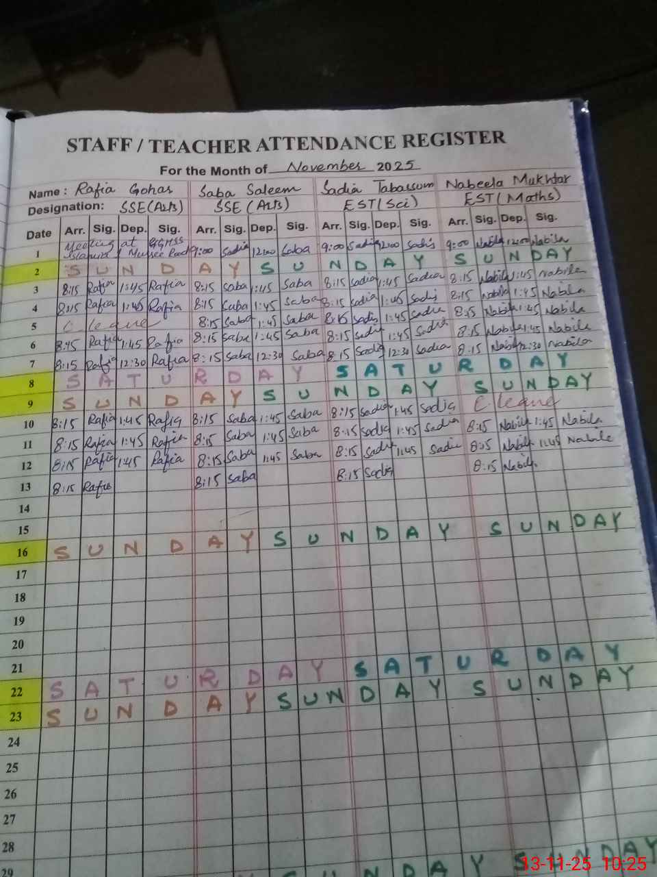 | 37**** | As**** Na**** | ESE Arts | Regular | 0 | 0 | 0 | 0 | 0 | 0 | 0 | 0 | 0 | Exam Duty |