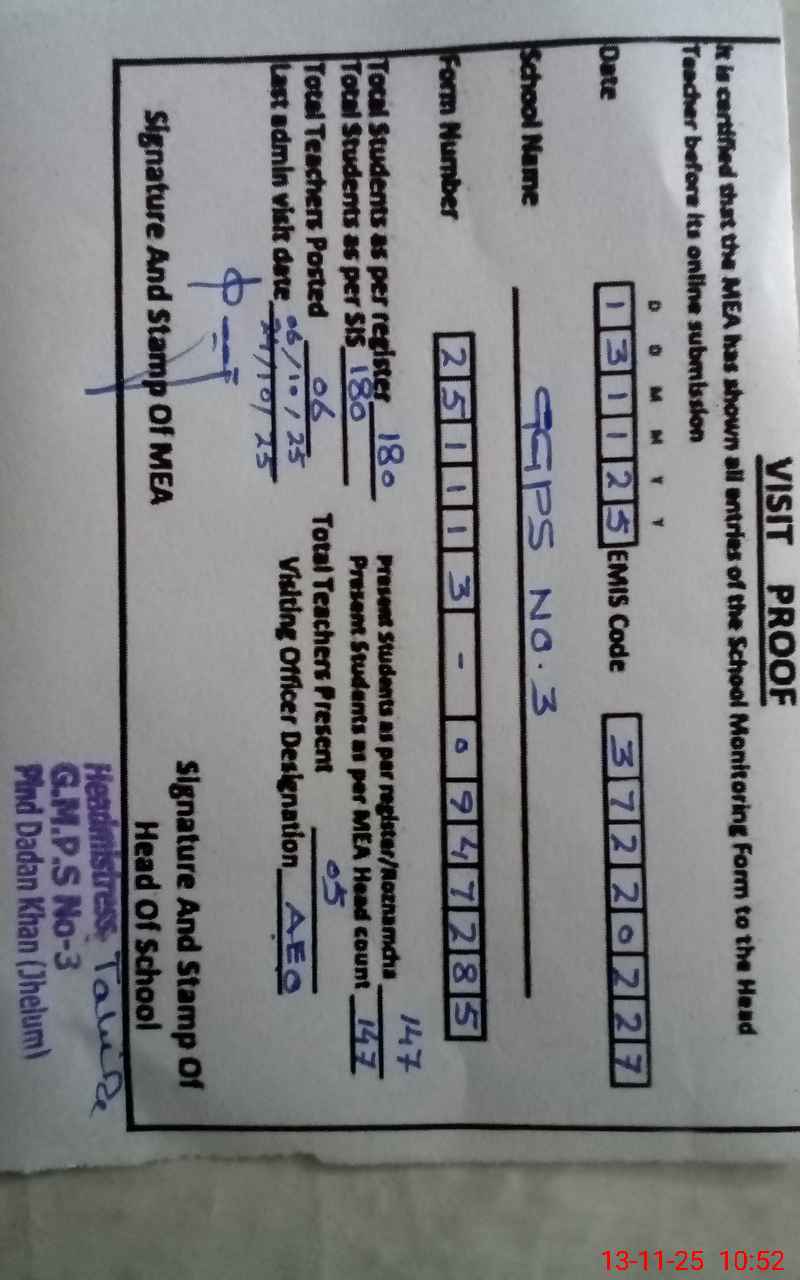| EMIS Code: 37220227 | Name of School: GMPS NO. 3 P.D KHAN | |||