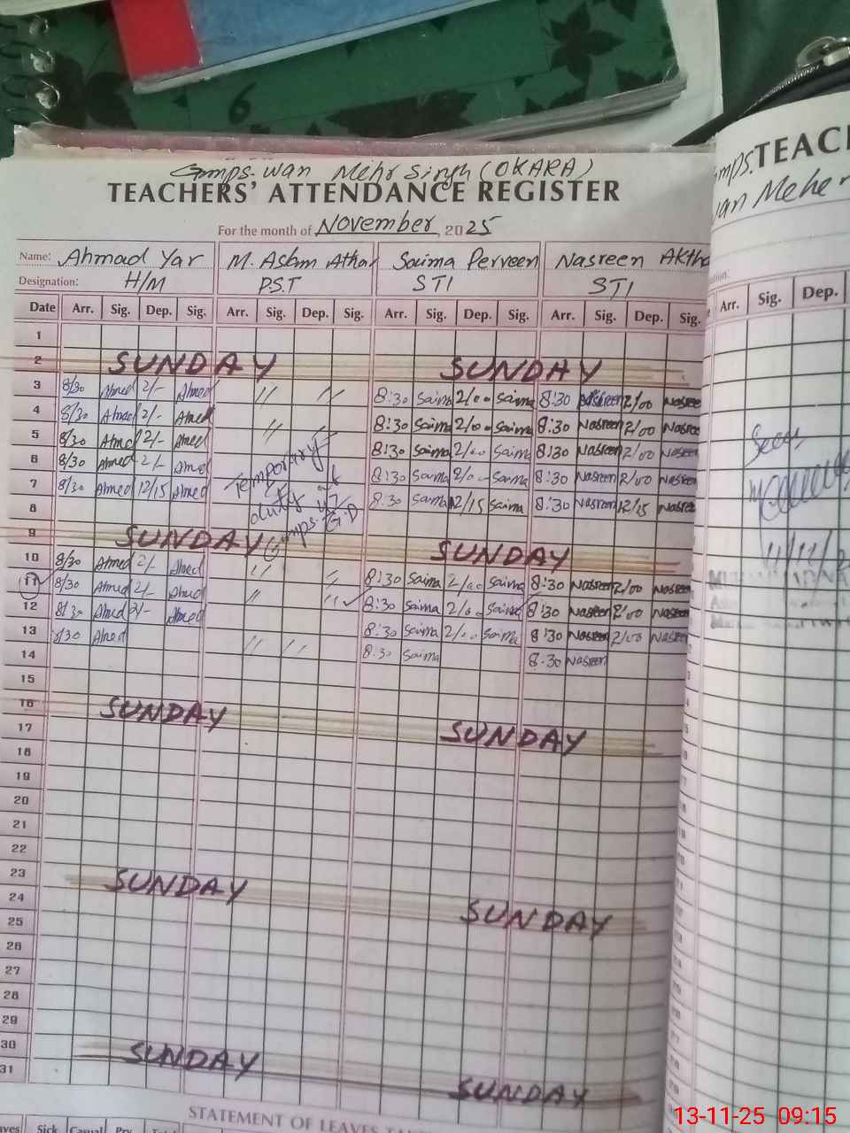 | Remarks (Use Separate Page if Required): Last admin visit on 11 November 2025 | |||||