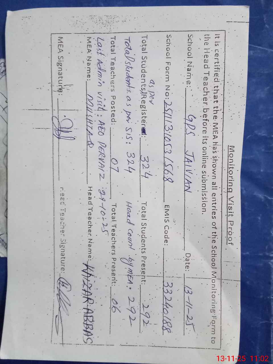| EMIS Code: 33240188 | Name of School: GPS JAIVIAN | |||