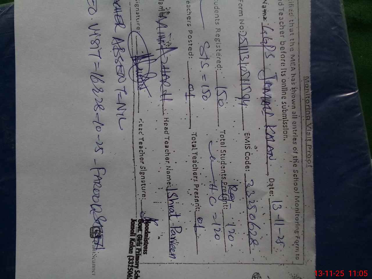 | EMIS Code: 33250628 | Name of School: GGPS JAMALI KALAN | |||
