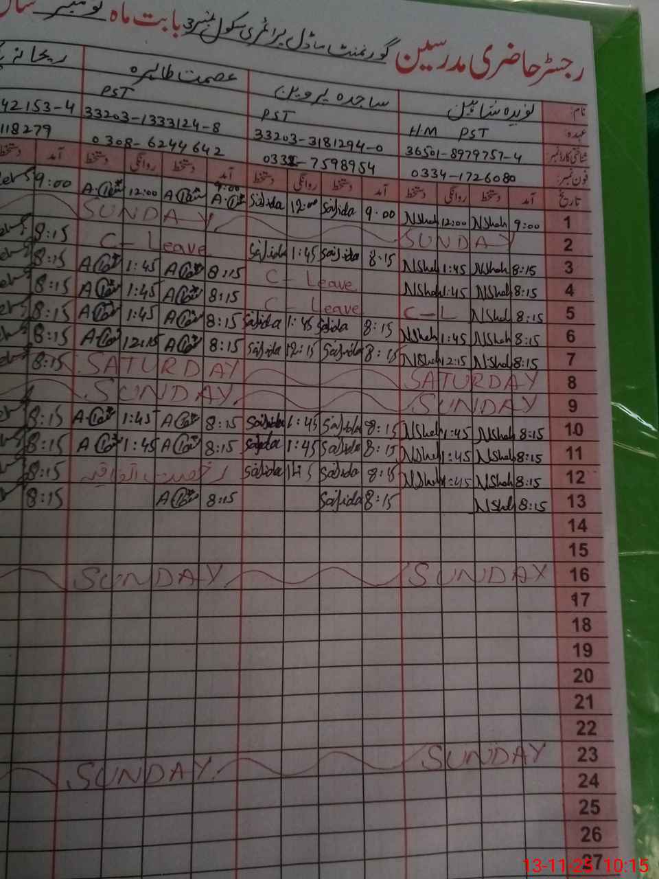 | Name: NA**** SH**** Designation: (School Headmaster's/Headmistress's) PST Phone/Cell Number: 03**** |