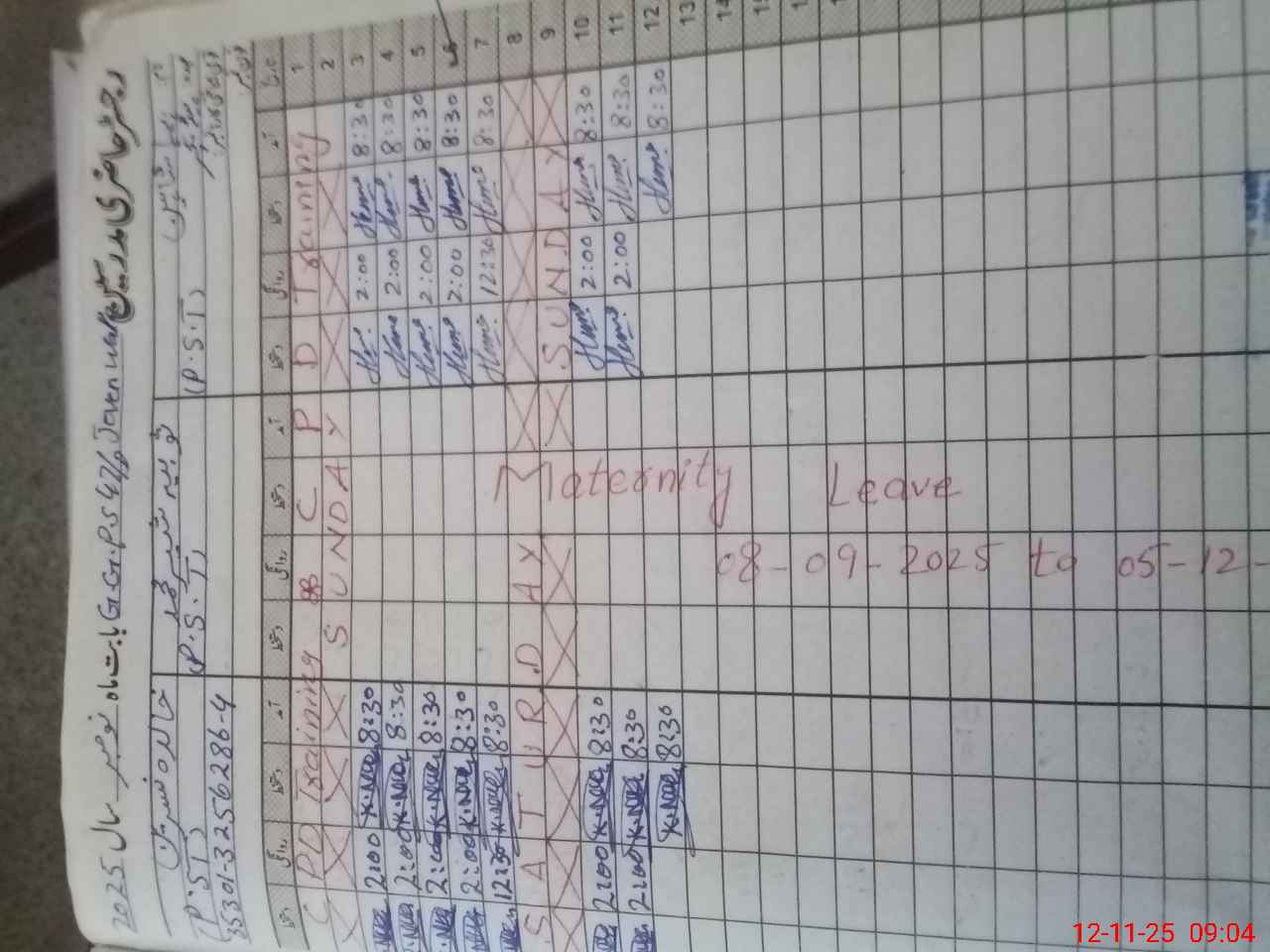 | Leave | Duty | Absent | Maternity | Medical | Ex- Pak |