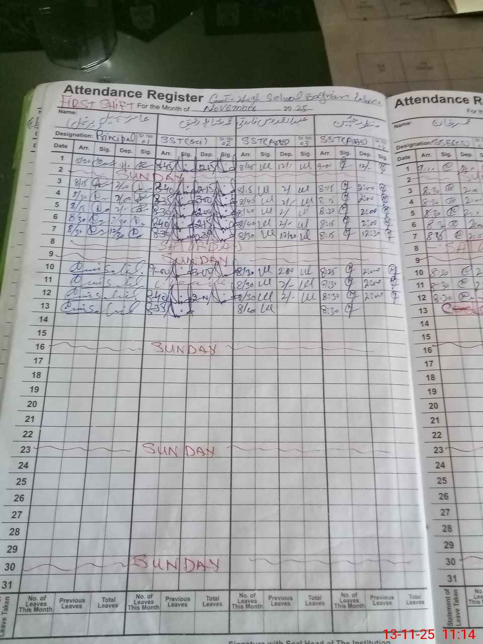 | 35**** | Mu**** Wa**** Sa**** | Regular | 0 | 0 | 31 | 0 | 0 | 0 | 0 | 0 | 0 | Absent (Un-Authorized) | |