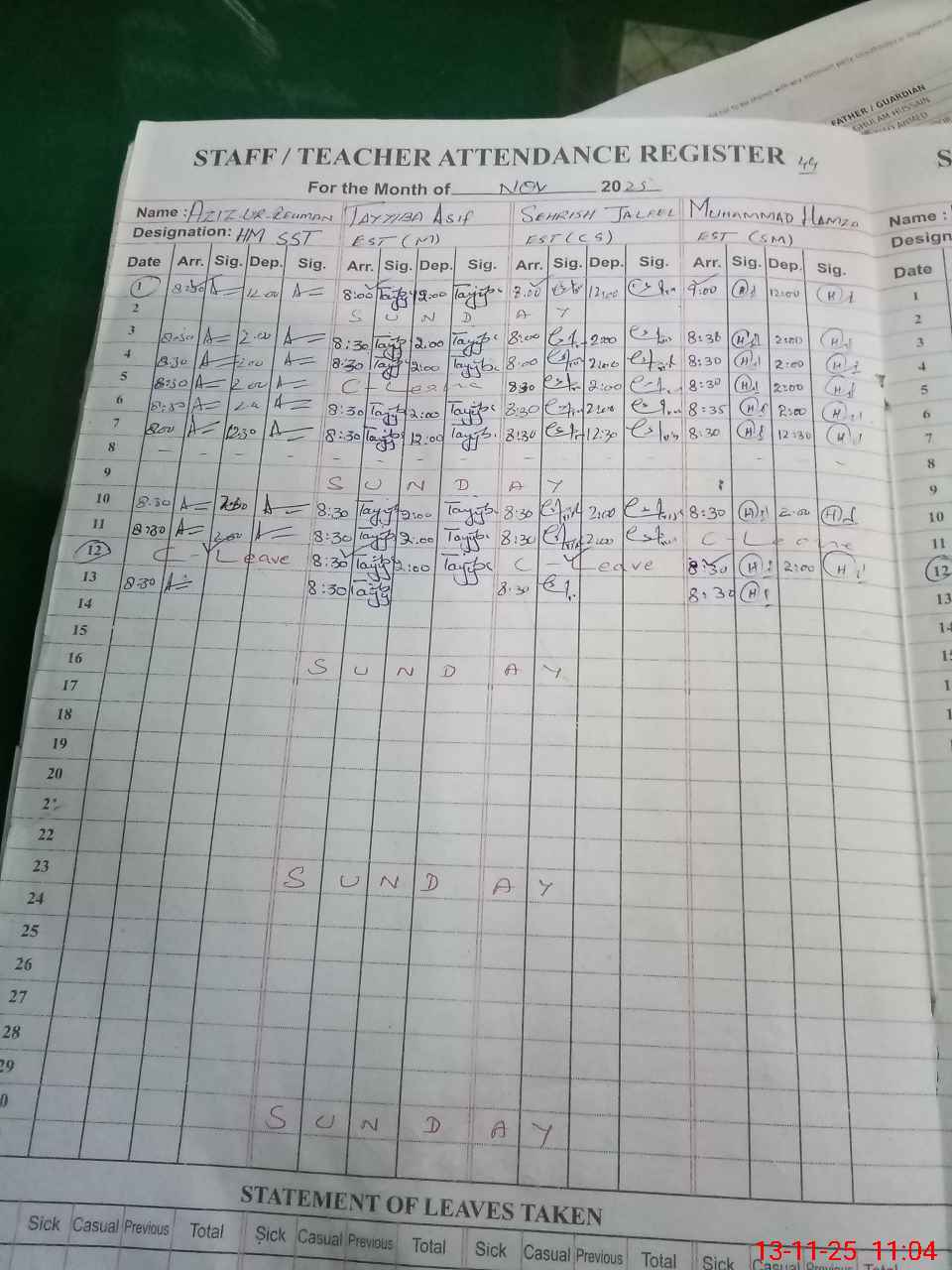 | 37**** | Im**** Hu**** | EST | Regular | 0 | 0 | 0 | 0 | 0 | 0 | 0 | 0 | 0 | Absent (Un-Authorized) |