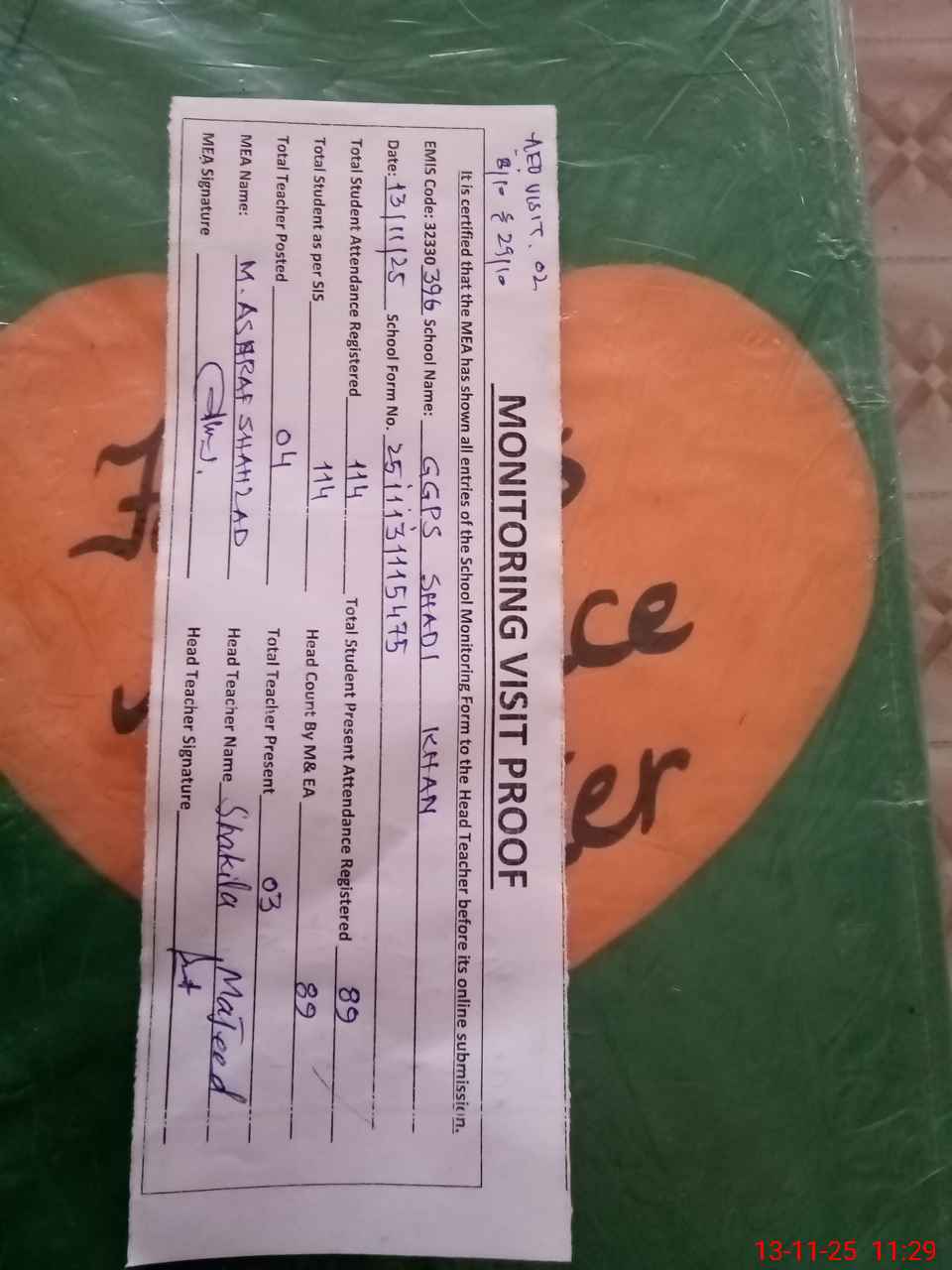 | EMIS Code: 32330396 | Name of School: GGPS SHADI KHAN | |||