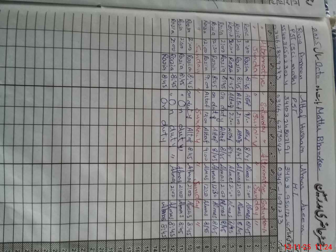 | Name: Al**** Az**** Designation: (School Headmaster's/Headmistress's) PST Phone/Cell Number: 03**** |
