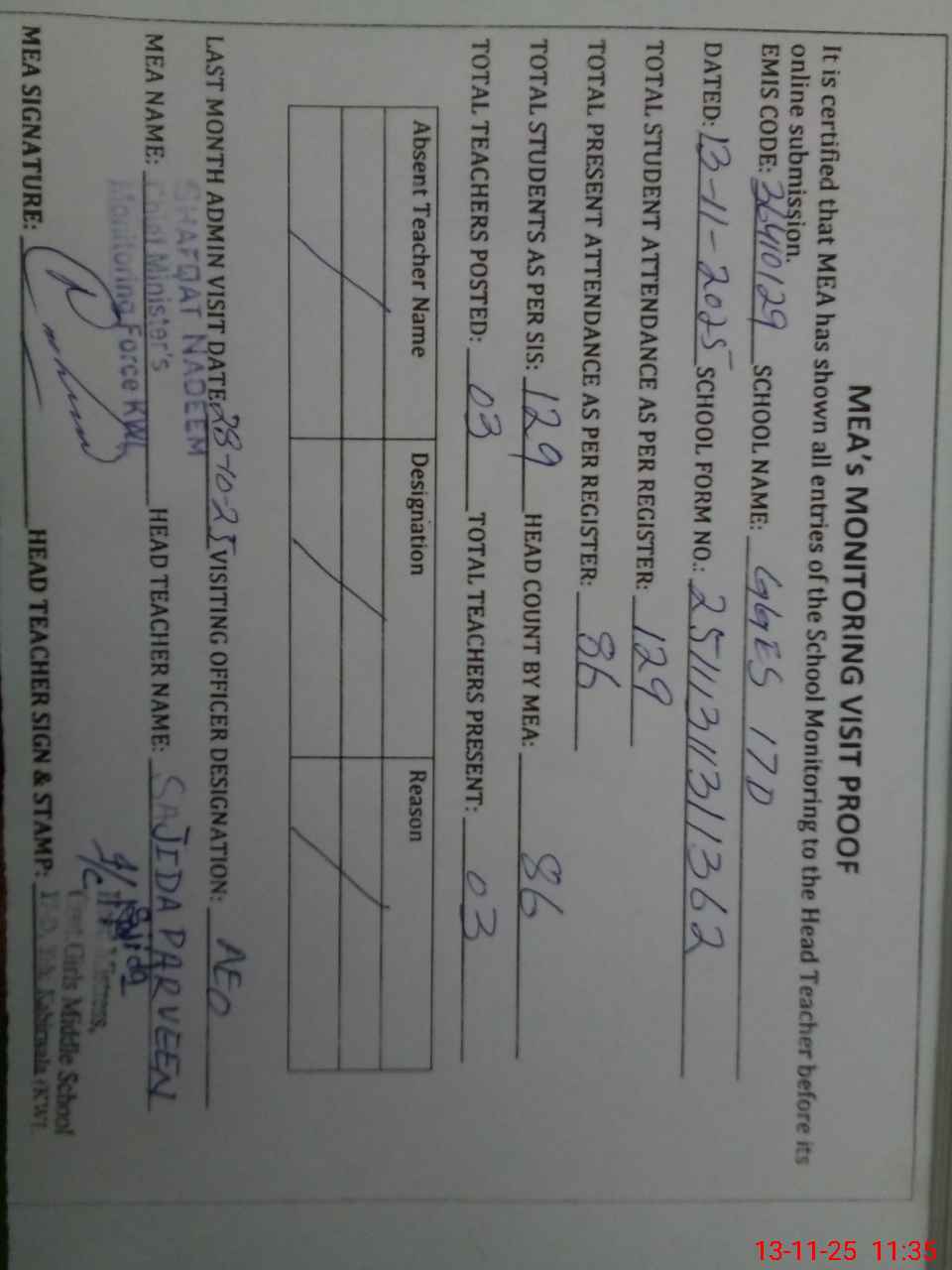 | EMIS Code: 36410129 | Name of School: GGES 17/D, ABDUL HAKIM | |||