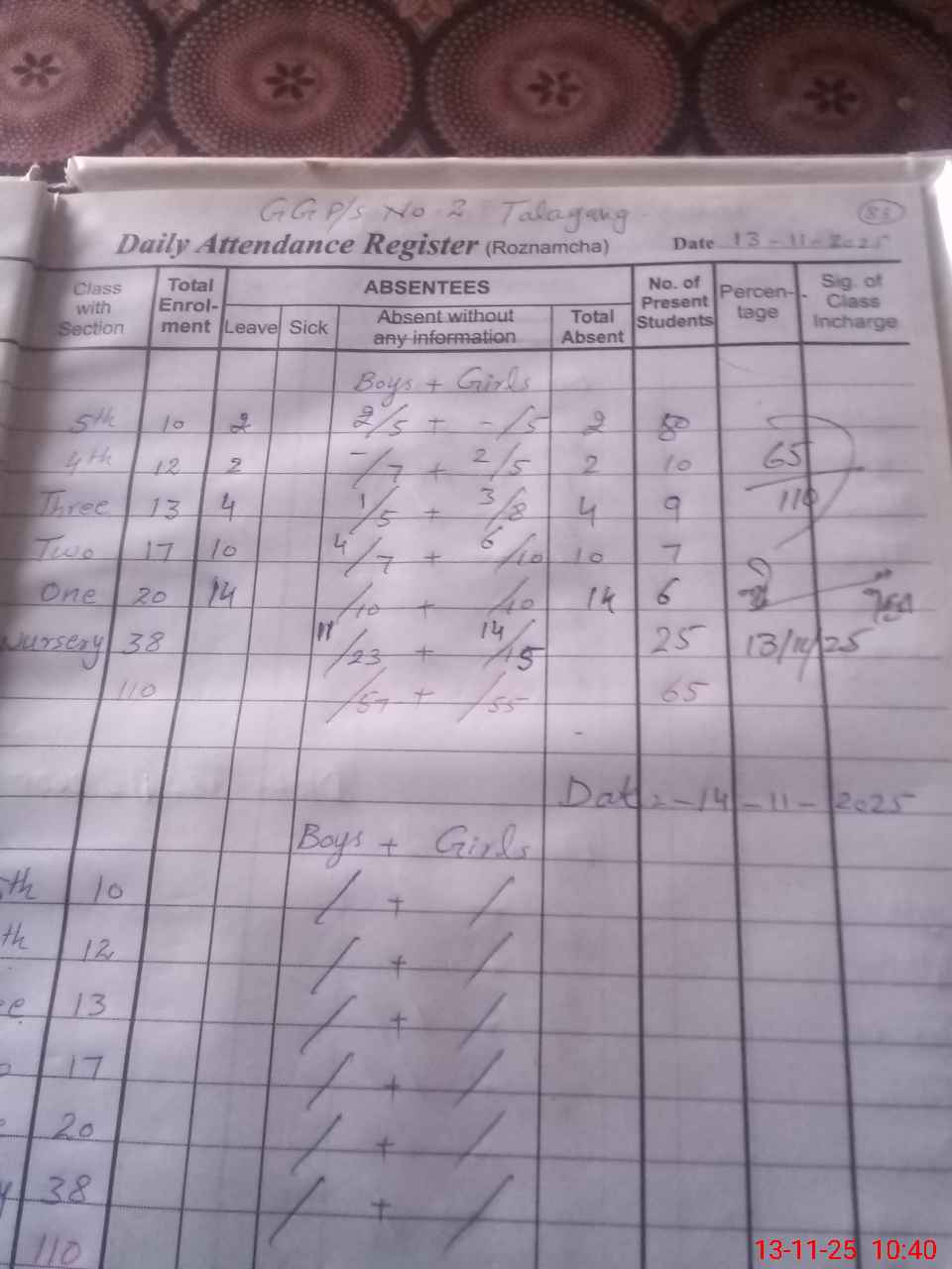 | Total Students Present | 0 | 0 | 25 | 6 | 7 | 9 | 10 | 8 | 65 | |||||||