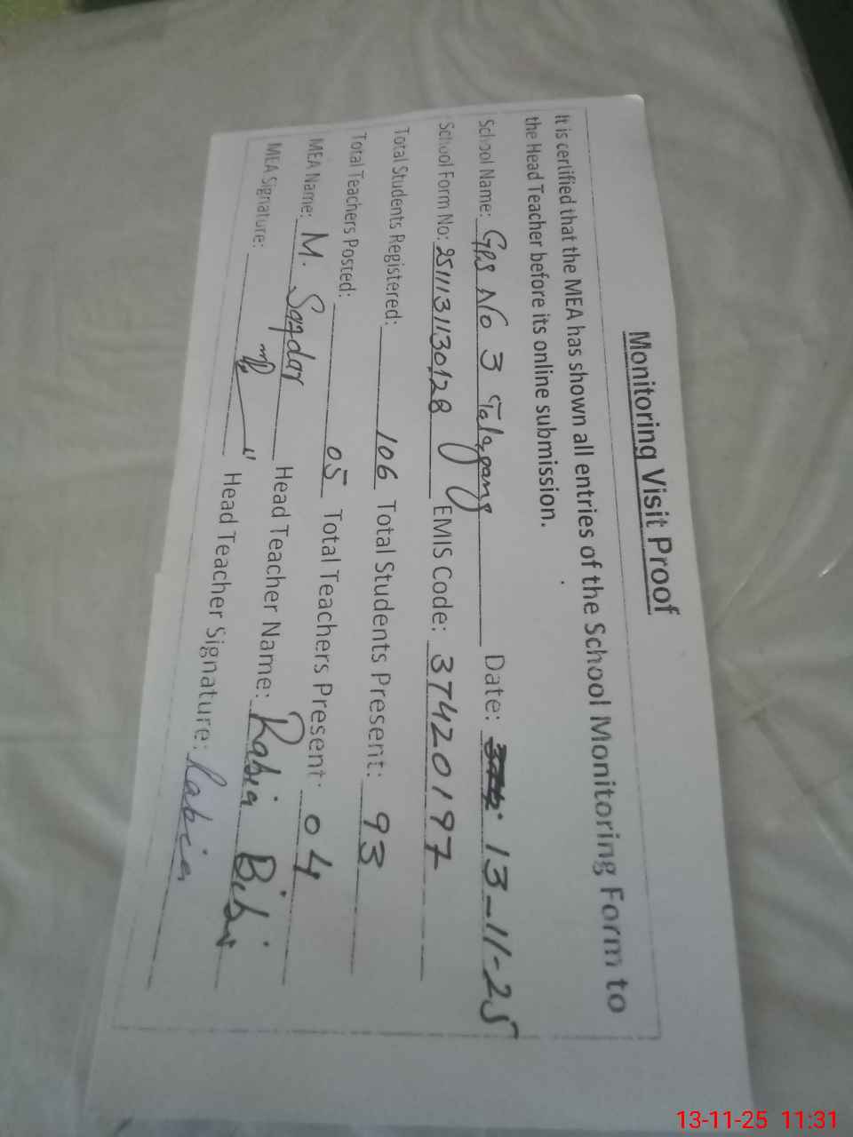 | EMIS Code: 37420197 | Name of School: GPS TALAGANG NO. 3 | |||
