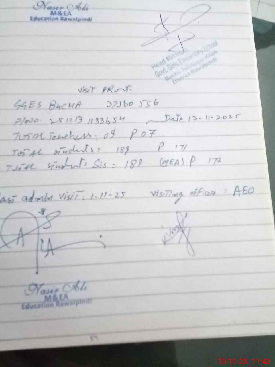 | Attendance Register | Head Teacher | MEA with School | Visit Proof |