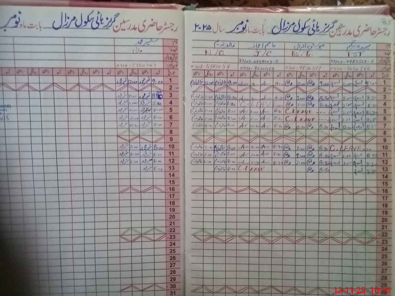 | CNIC | Full Name | Designation | R/C | Absence During Last Calender Month |