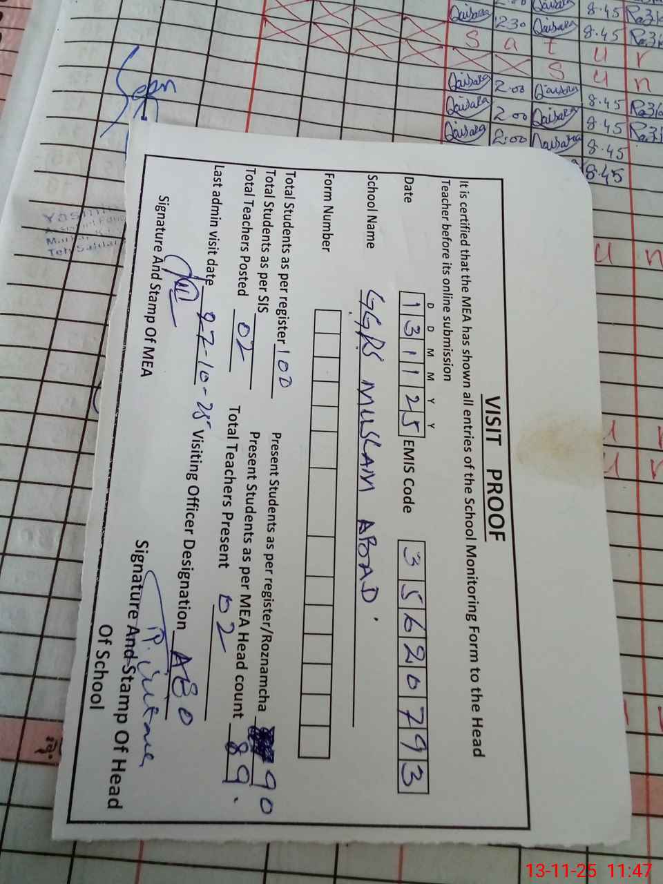| EMIS Code: 35620793 | Name of School: GGPS MUSLIM ABAD | |||