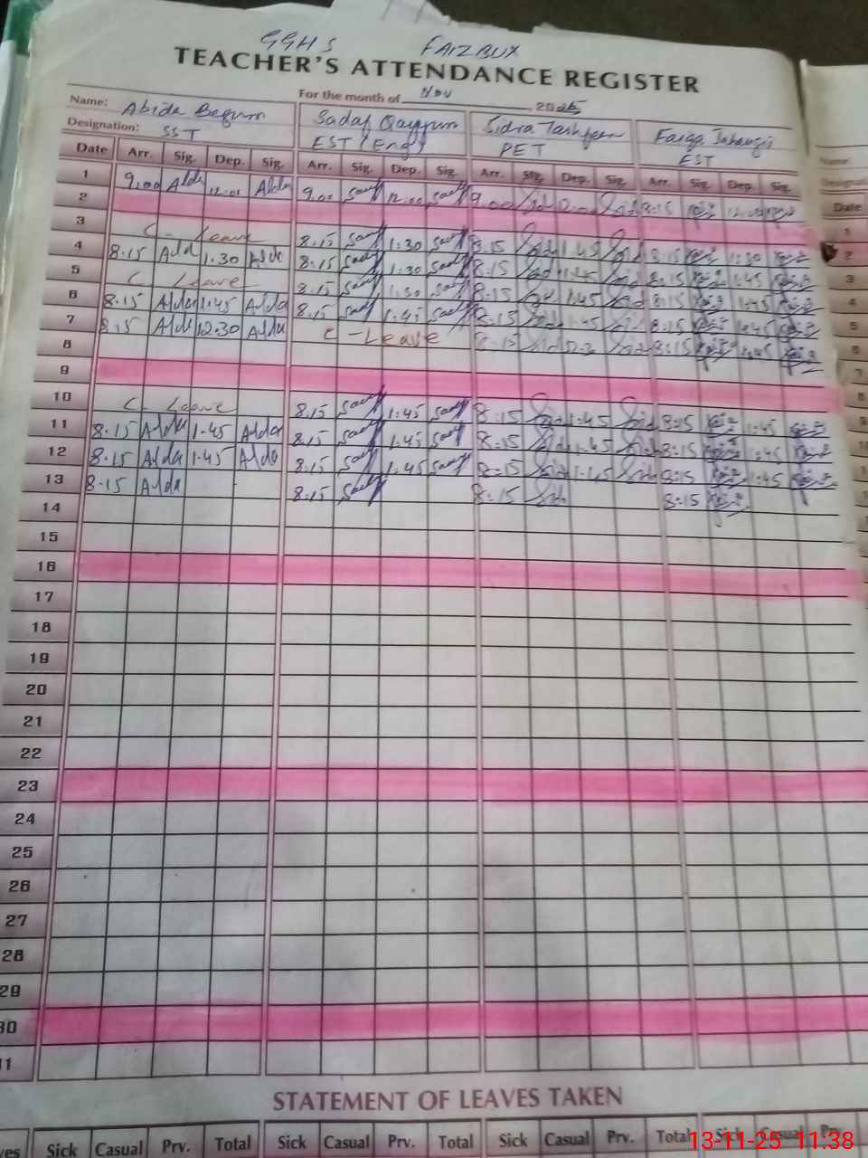 | 37**** | Ad**** Ta**** | ESE Arts | Regular | 0 | 0 | 0 | 0 | 0 | 0 | 0 | 0 | 0 | Casual |