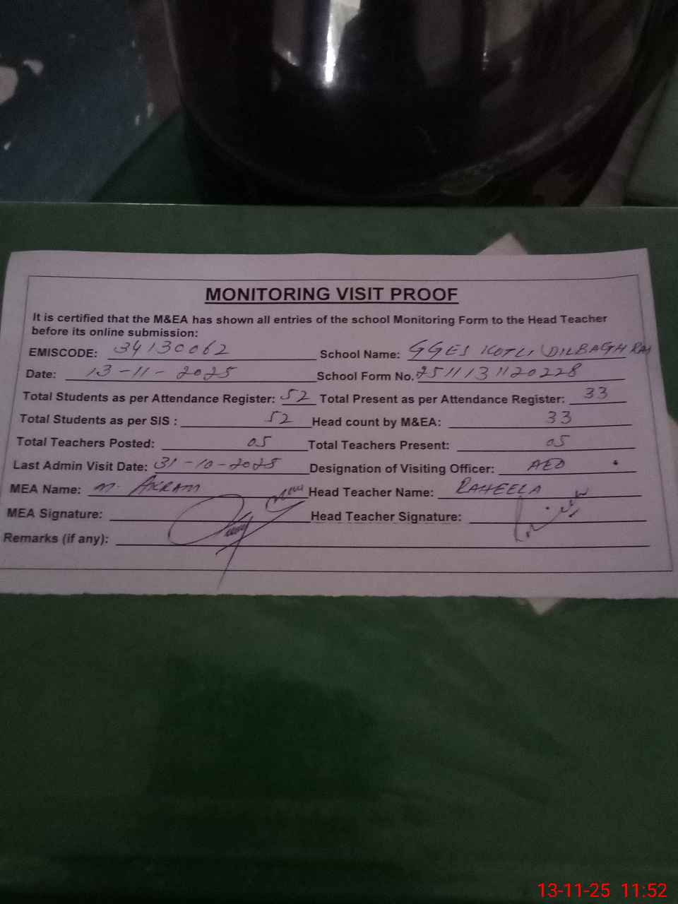 | EMIS Code: 34130062 | Name of School: GGES KOTLI DIL BAGHRAI | |||
