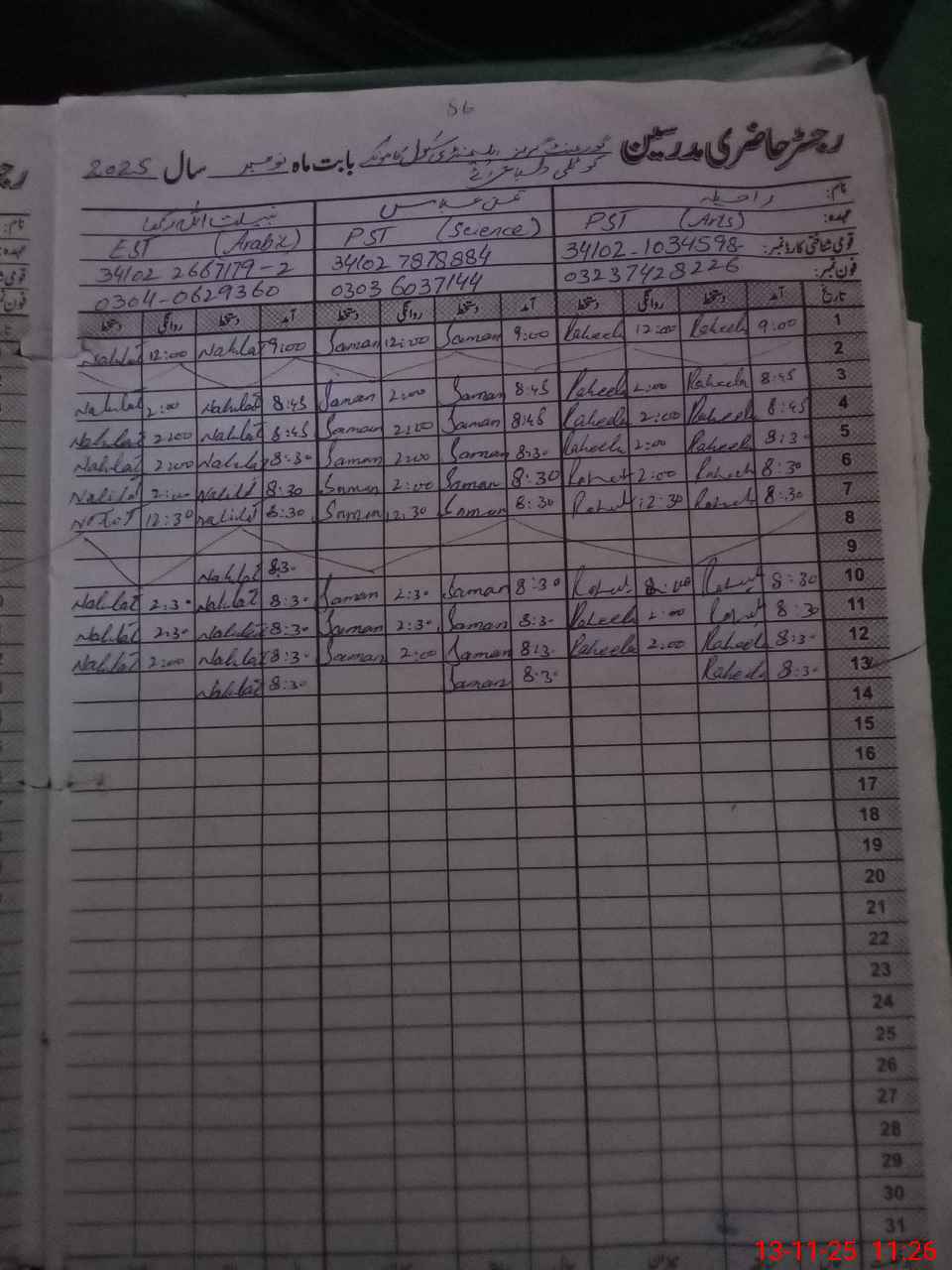 | Name: RA**** Designation: (School Headmaster's/Headmistress's) ESt Phone/Cell Number: 03**** |