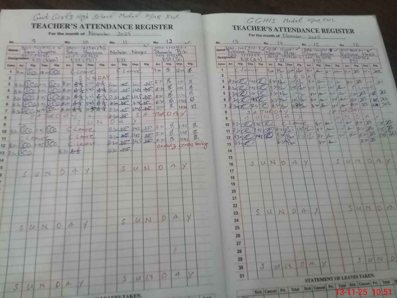 | CNIC | Full Name | Designation | R/C | Absence During Last Calender Month |