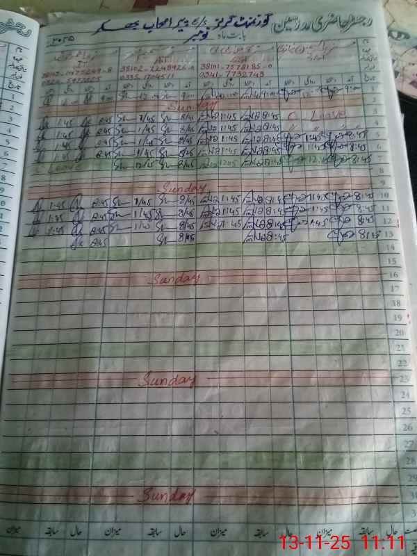 | CNIC | Full Name | Designation | R/C | Absence During Last Calender Month |