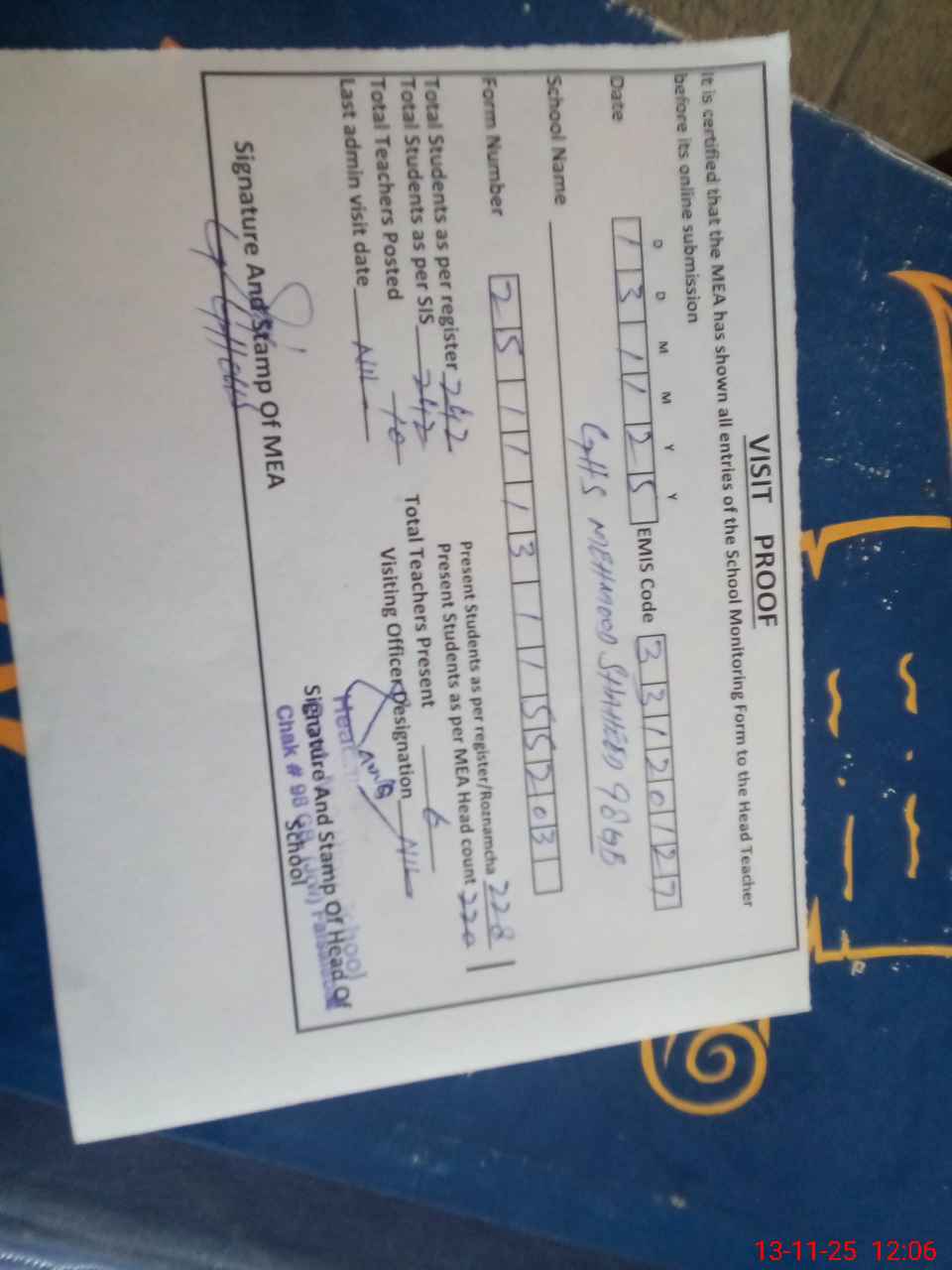 | EMIS Code: 33120127 | Name of School: Govt. Mahmood Shaheed Boys High School 98 GB | |||