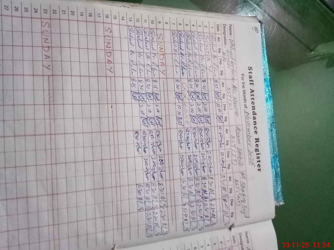 | 35**** | Na**** Ma**** | SWEEPER | 3 | 0 | 0 | 0 | 0 | 0 | 0 | 0 | 3 | Casual | |
