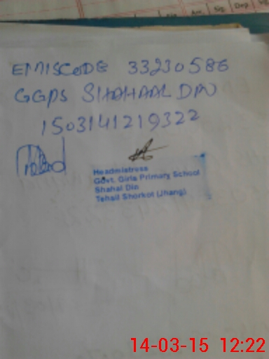 | EMIS Code: 33230586 | Name of School: GGPS SHAHAL DIN | |||