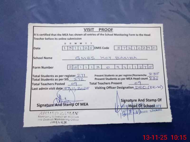 | EMIS Code: 37210290 | Name of School: GMES KOT BASIRA | |||
