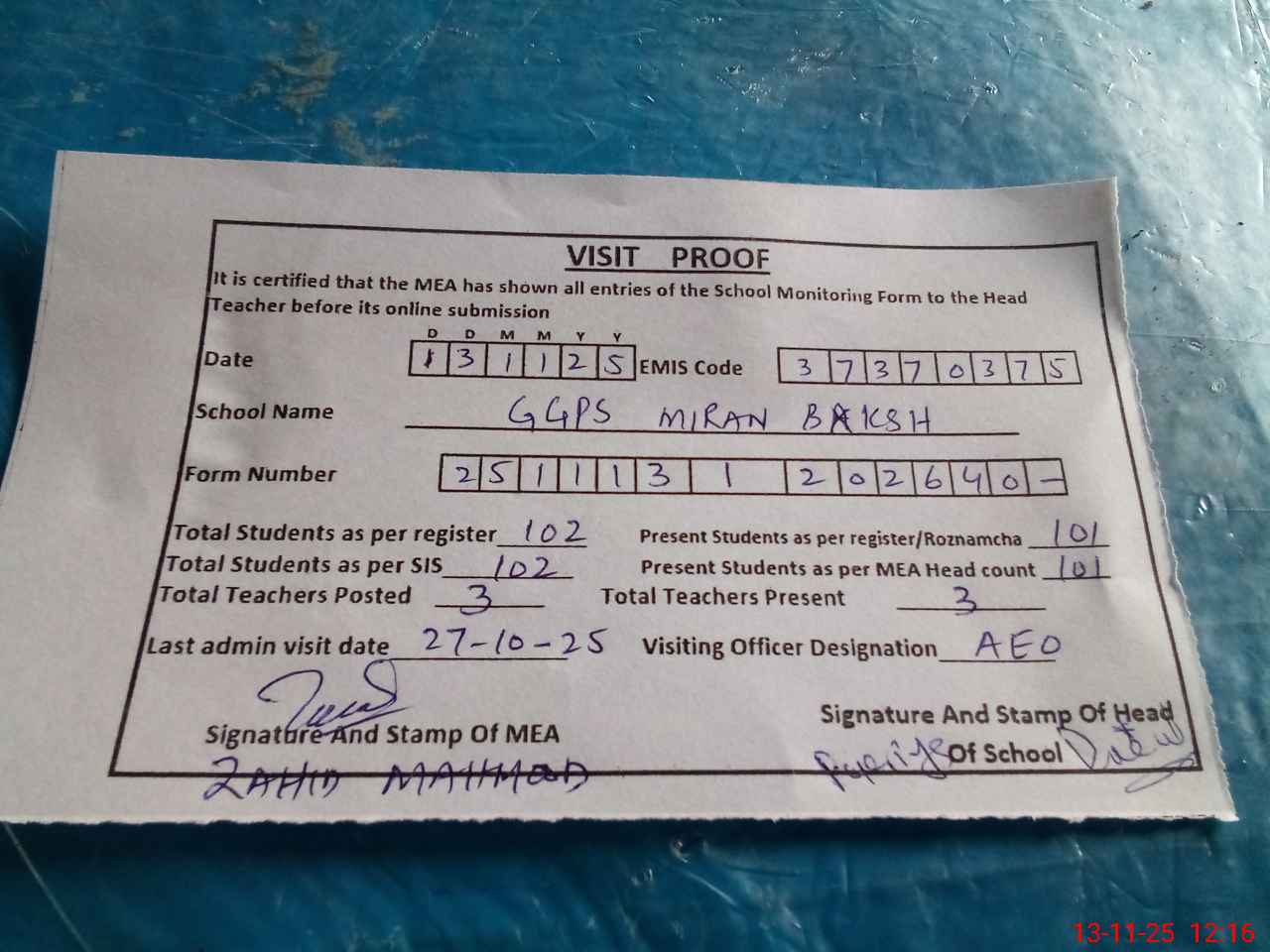 | EMIS Code: 37370375 | Name of School: GGPS MIRAN BUX | |||
