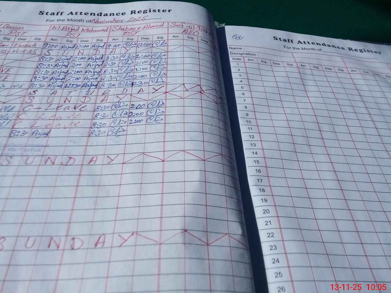 | CNIC | Full Name | Designation | R/C | Absence During Last Calender Month |