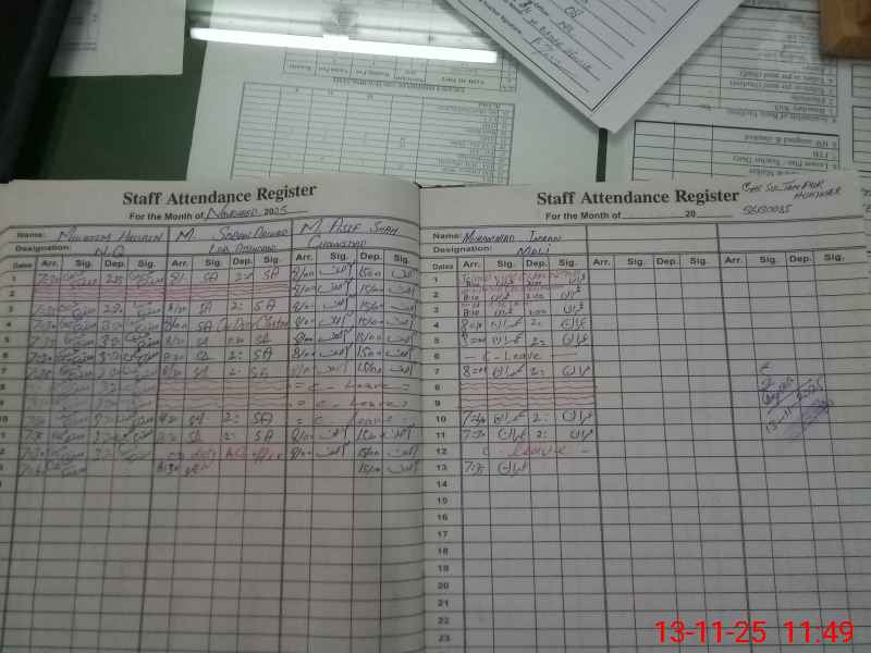 | CNIC | Full Name | Designation | R/C | Absence During Last Calender Month |