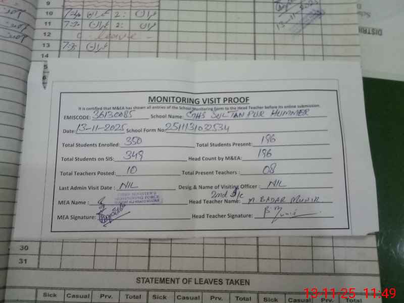 | EMIS Code: 36130085 | Name of School: GHS SULTAN PUR HUMMER P/O SHER SHAH MULTAN | |||