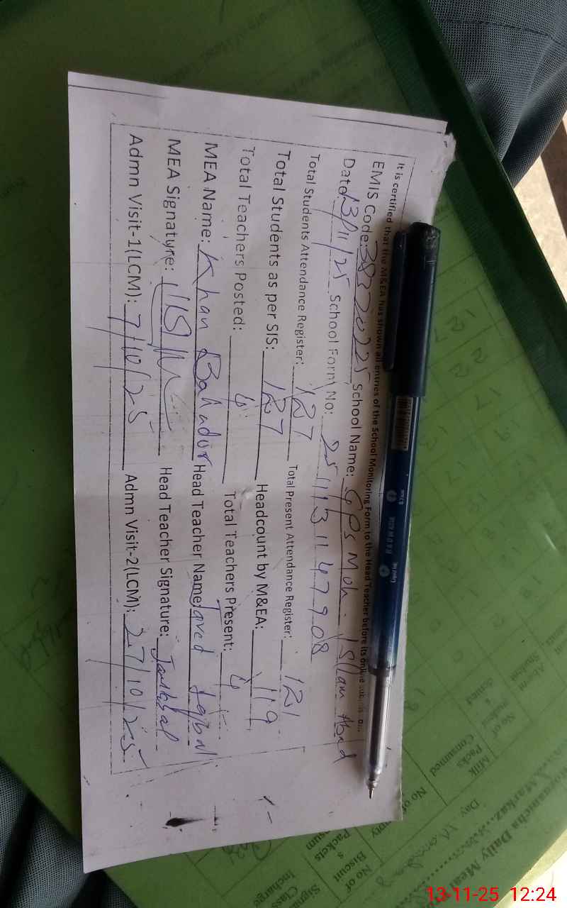 | EMIS Code: 38320225 | Name of School: GPS MOH. ISLAM ABAD | |||