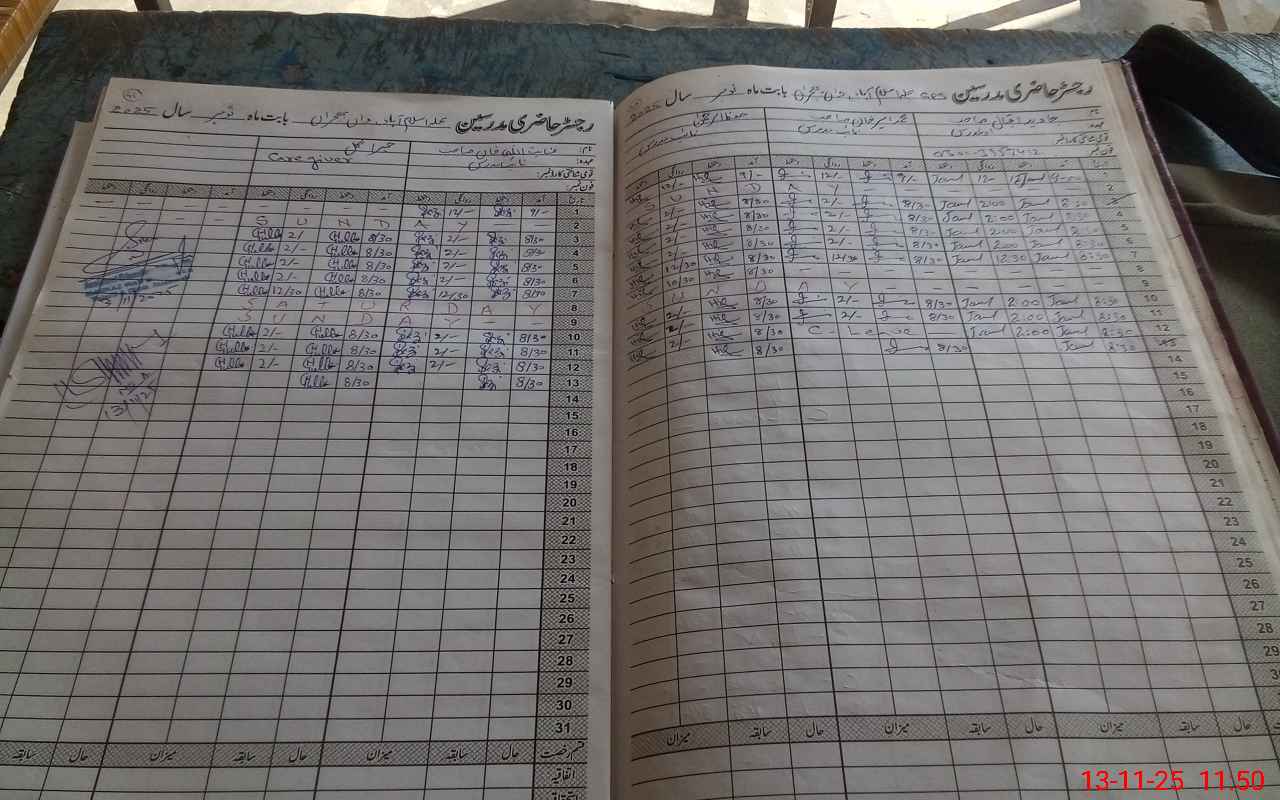 | CNIC | Full Name | Designation | R/C | Absence During Last Calender Month |