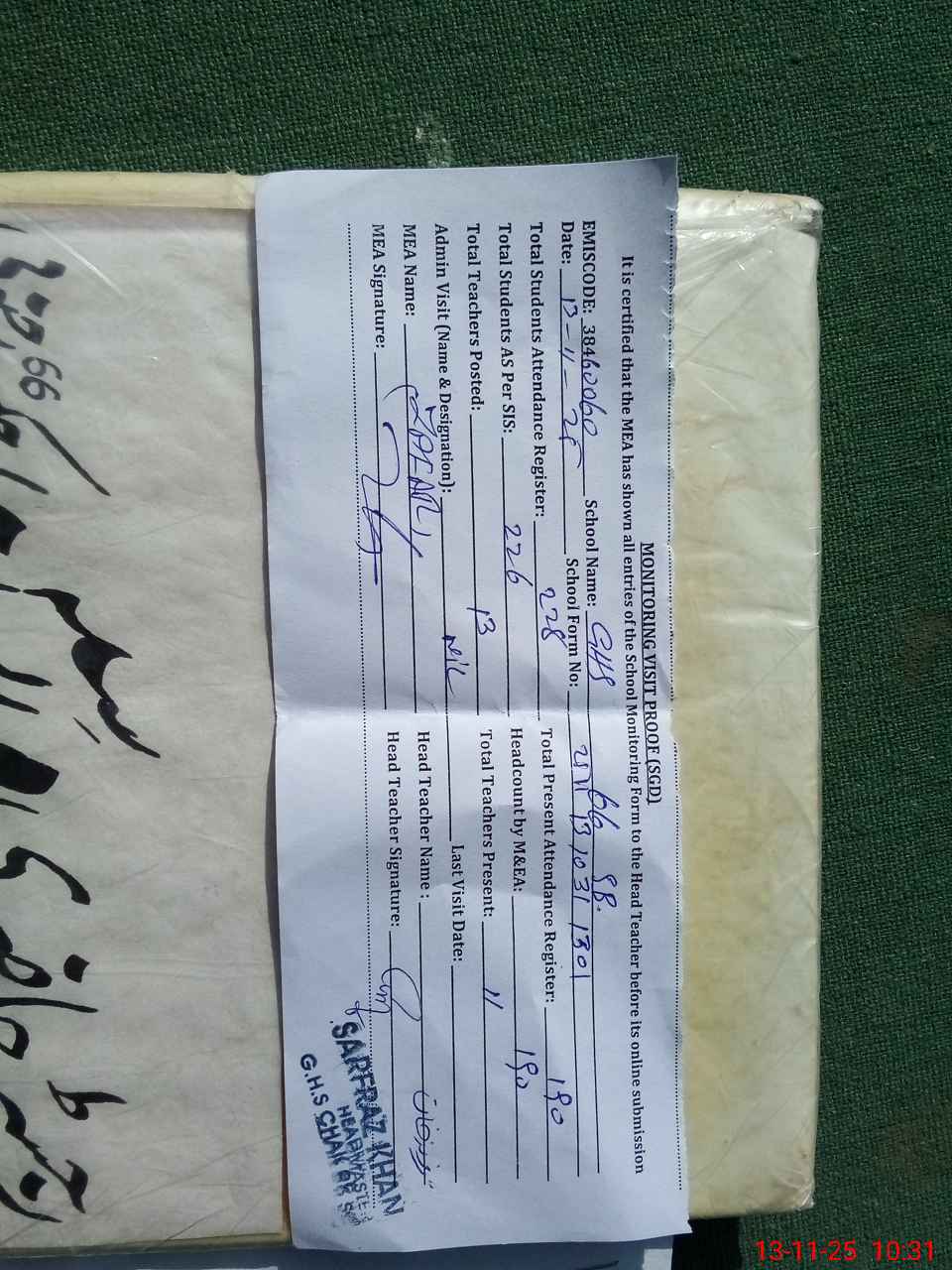 | EMIS Code: 38460060 | Name of School: GHS CHAK NO.66 SB | |||