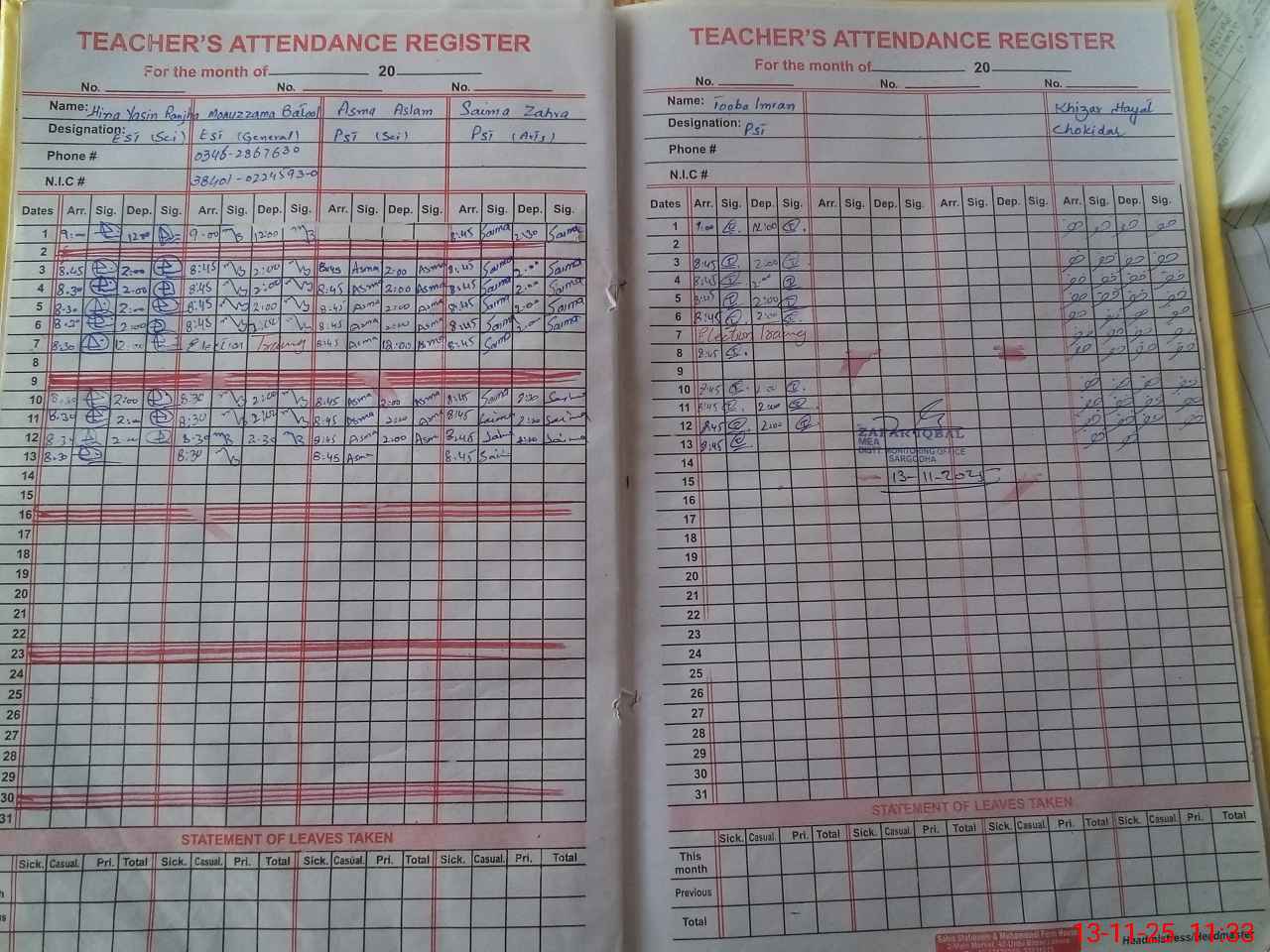 | Name: IF**** ZO**** Designation: (School Headmaster's/Headmistress's) SST G Phone/Cell Number: 03**** |