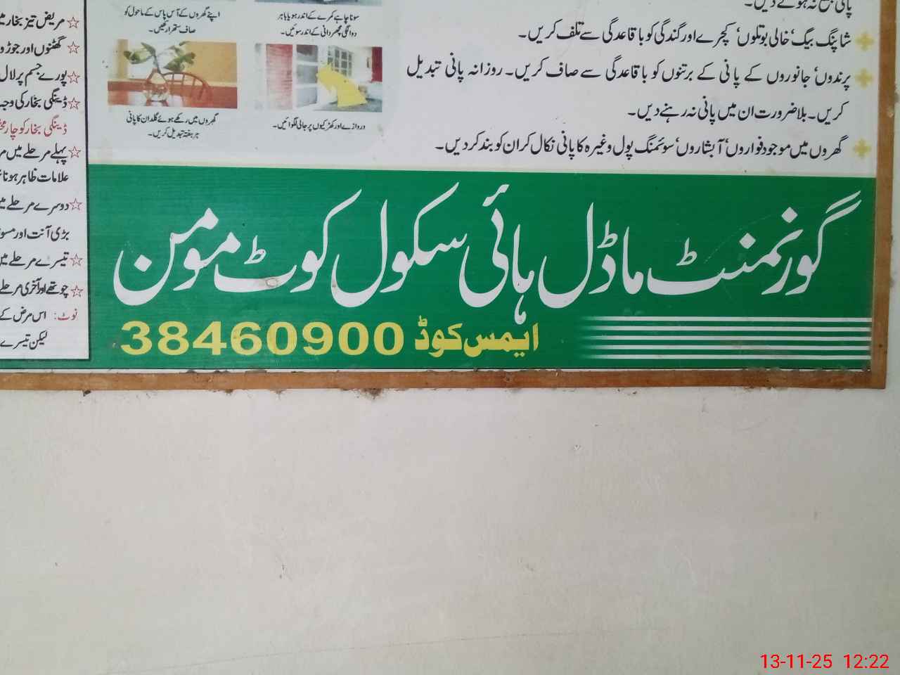 | EMIS Code: 38460900 | Name of School: GHS MODEL KOT MOMIN | |||