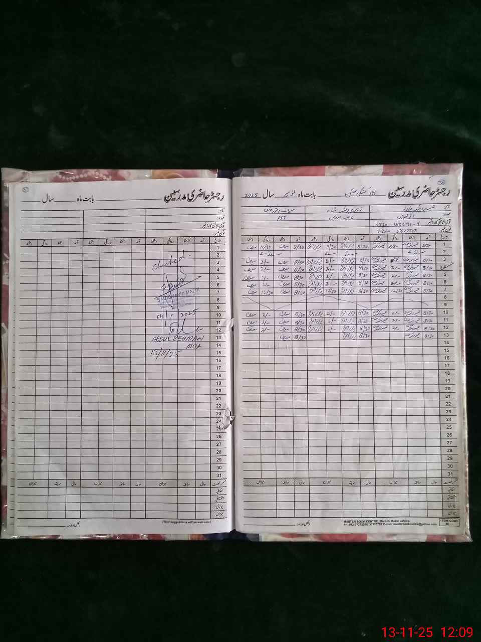 | CNIC | Full Name | Designation | R/C | Absence During Last Calender Month |