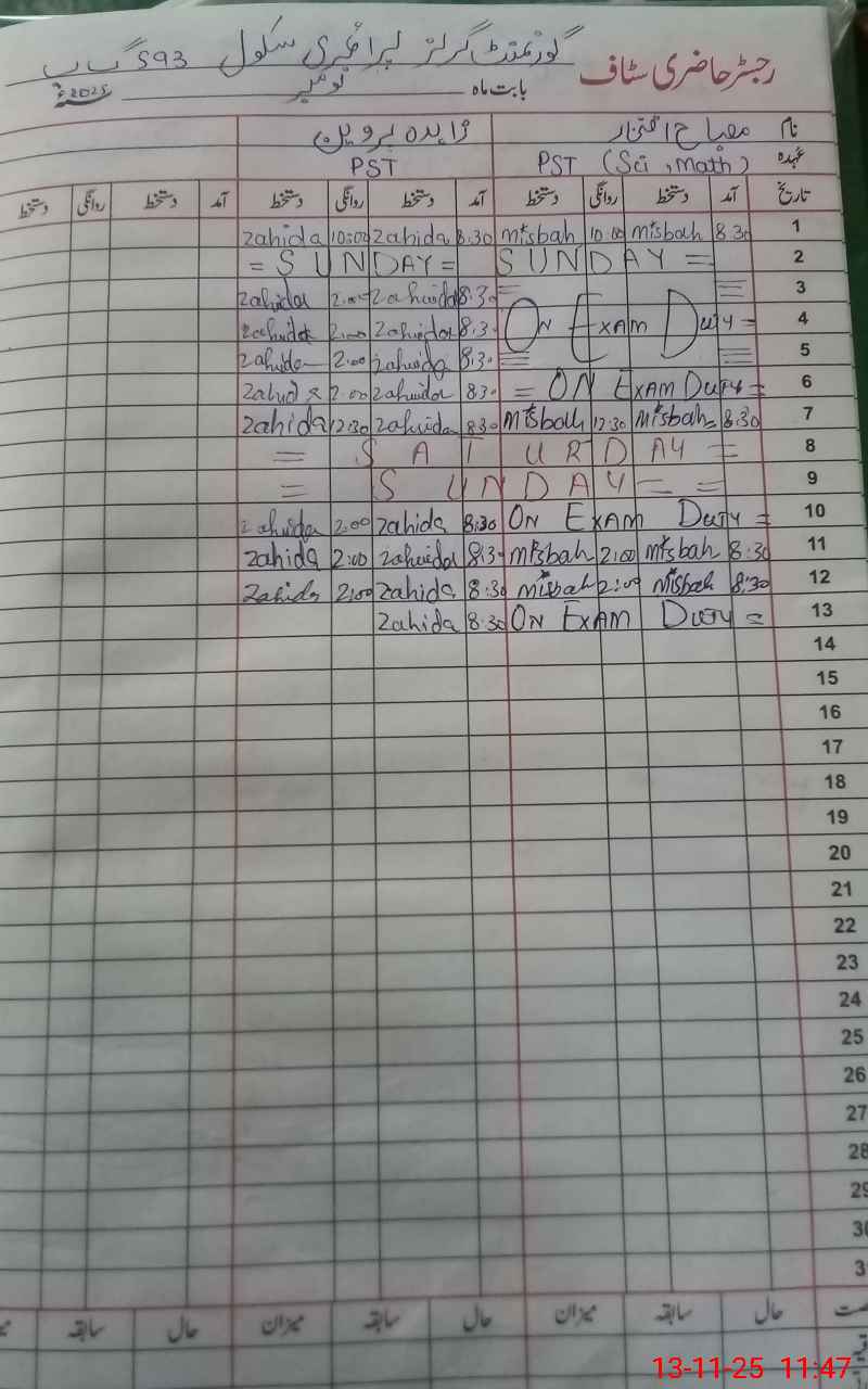 | Name: MI**** IF**** Designation: (School Headmaster's/Headmistress's) PST Phone/Cell Number: 03**** |