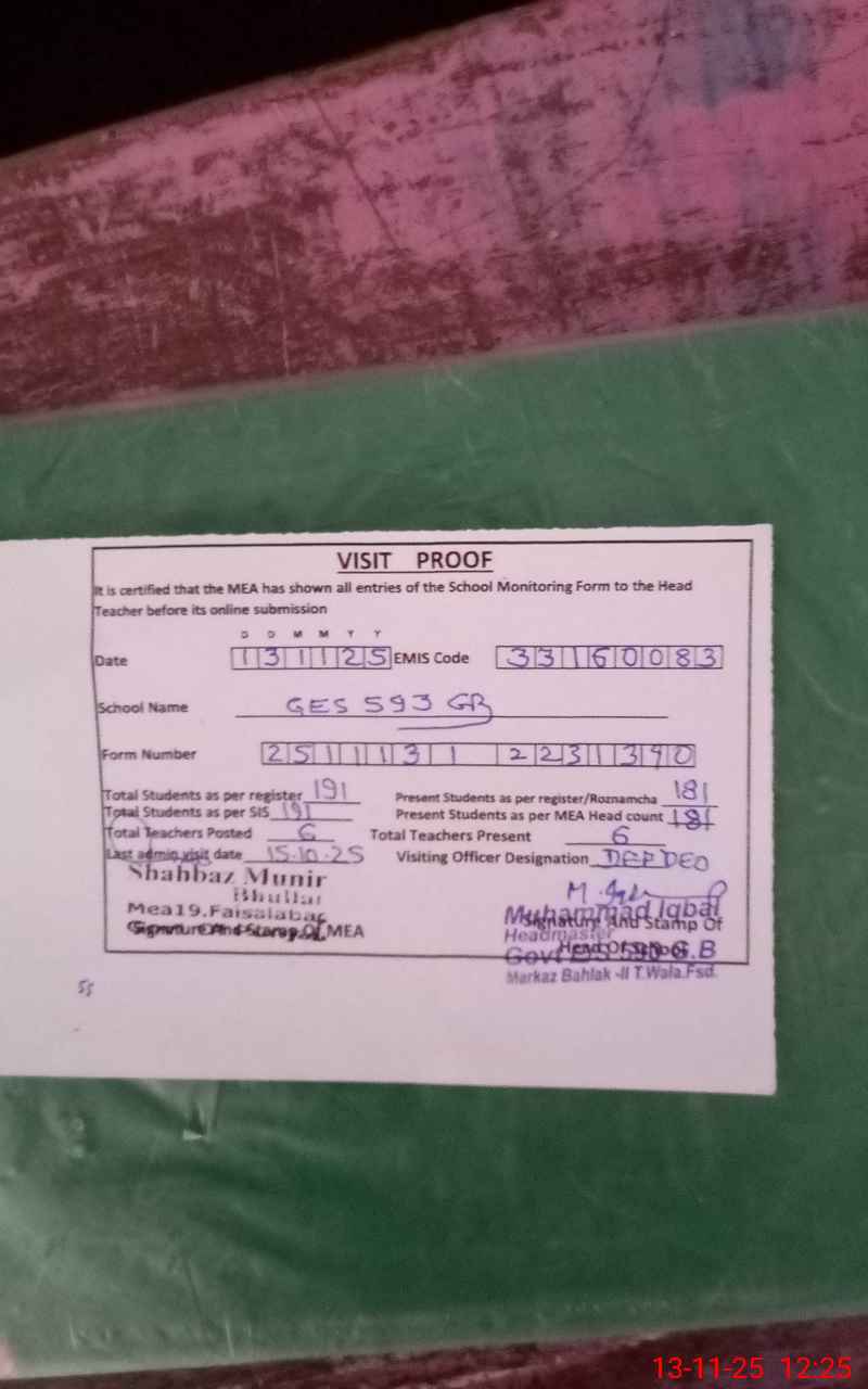 | EMIS Code: 33160083 | Name of School: GES CHAK NO 593 GB | |||