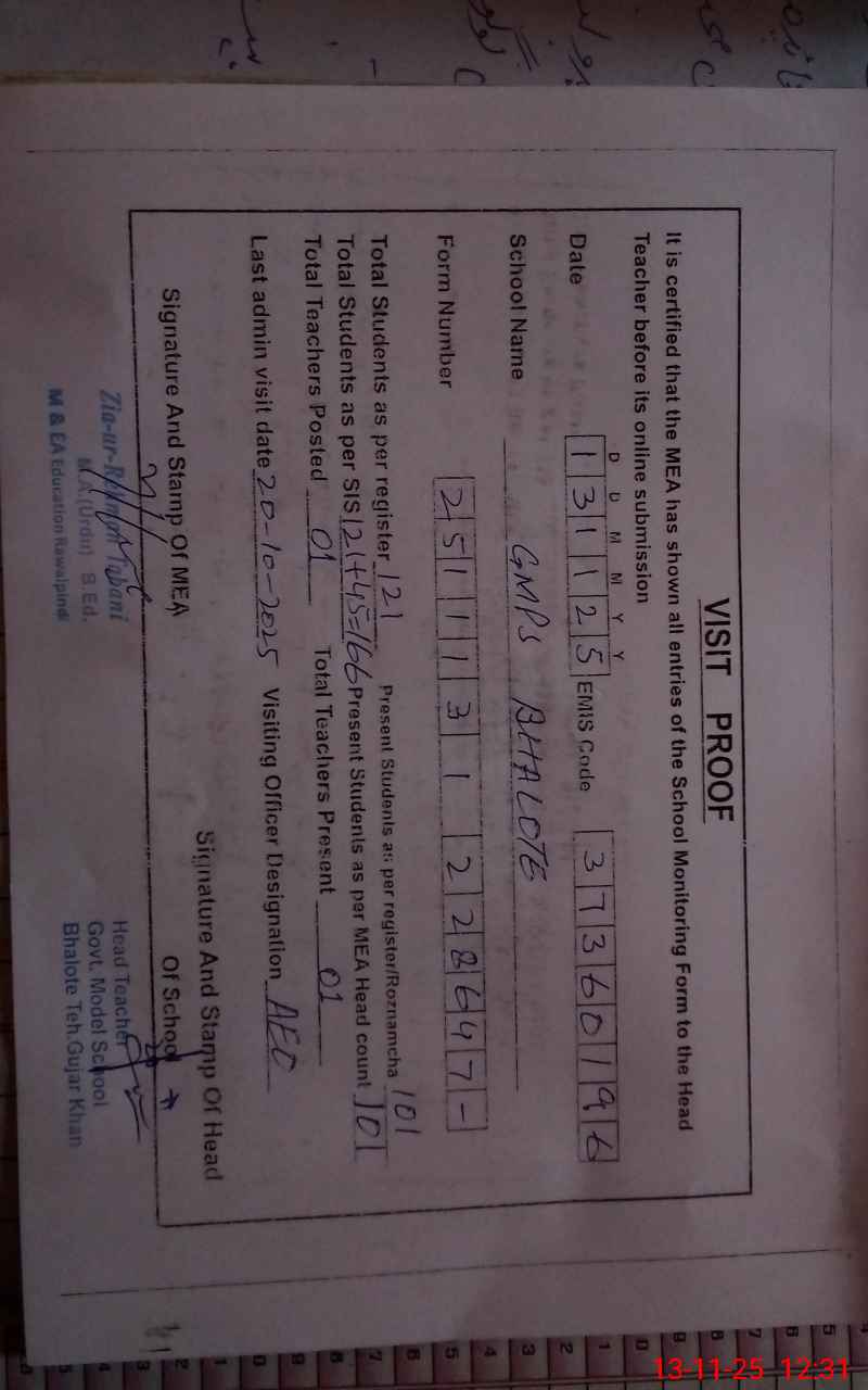 | EMIS Code: 37360196 | Name of School: GPS MODEL BHALOTE | |||