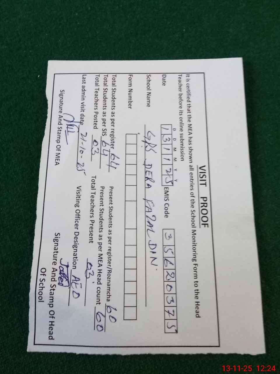 | EMIS Code: 35620375 | Name of School: GPS DERA FAZAL DIN | |||