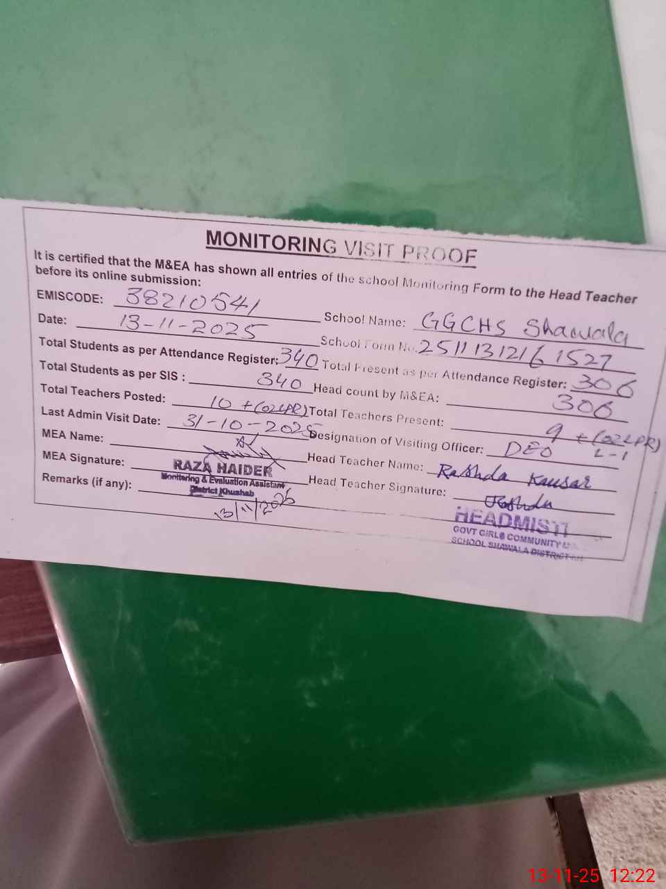 | EMIS Code: 38210541 | Name of School: GGCHS SHAWALA | |||