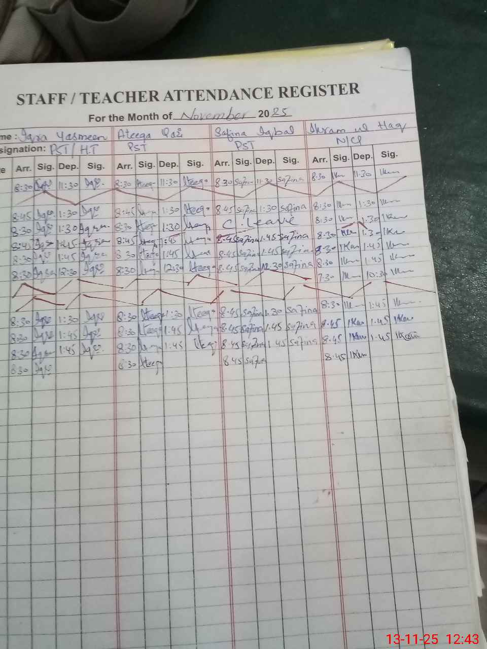 | CNIC | Full Name | Designation | R/C | Absence During Last Calender Month |