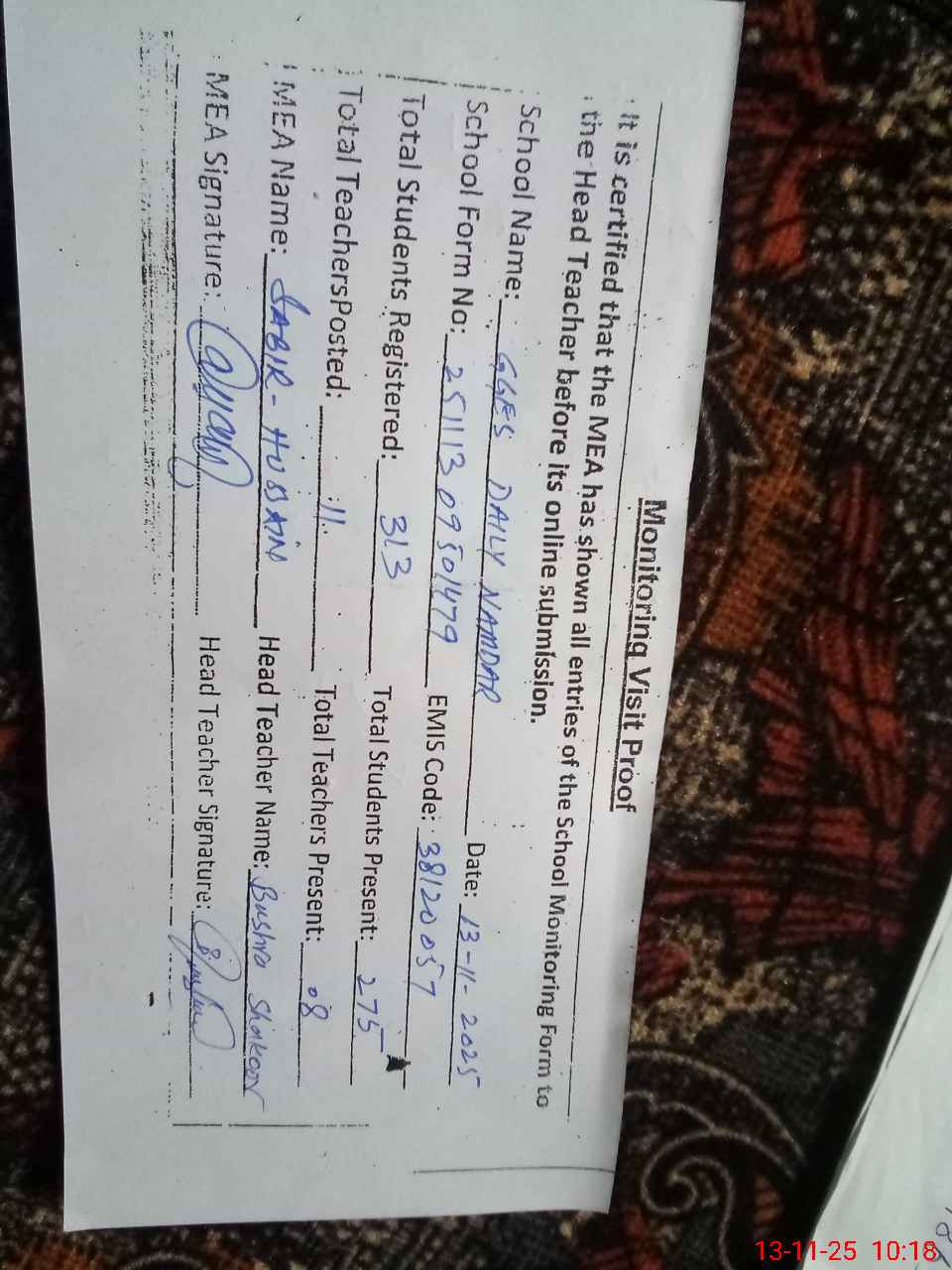 | EMIS Code: 38120057 | Name of School: GGES DAILY NAMDAR | |||