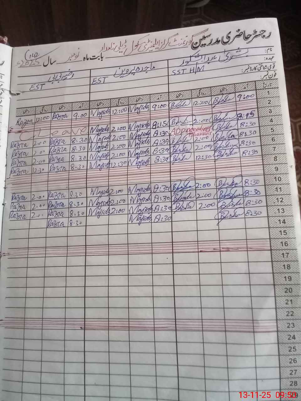 | Remarks (Use Separate Page if Required): Last visit by AEO SABBA ASHRAF on 27 10 2025 | |||||
