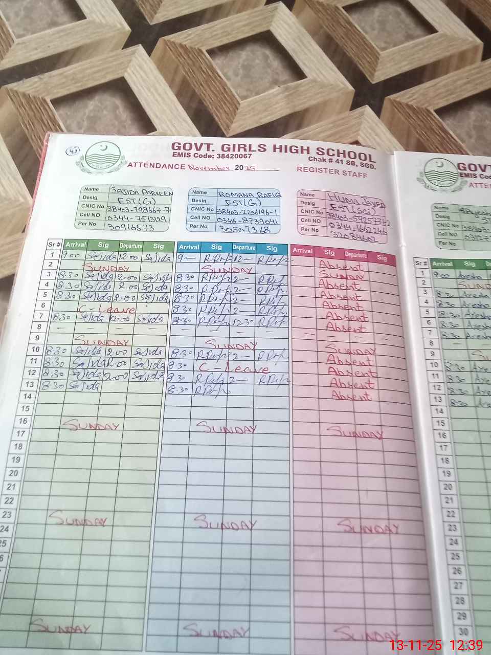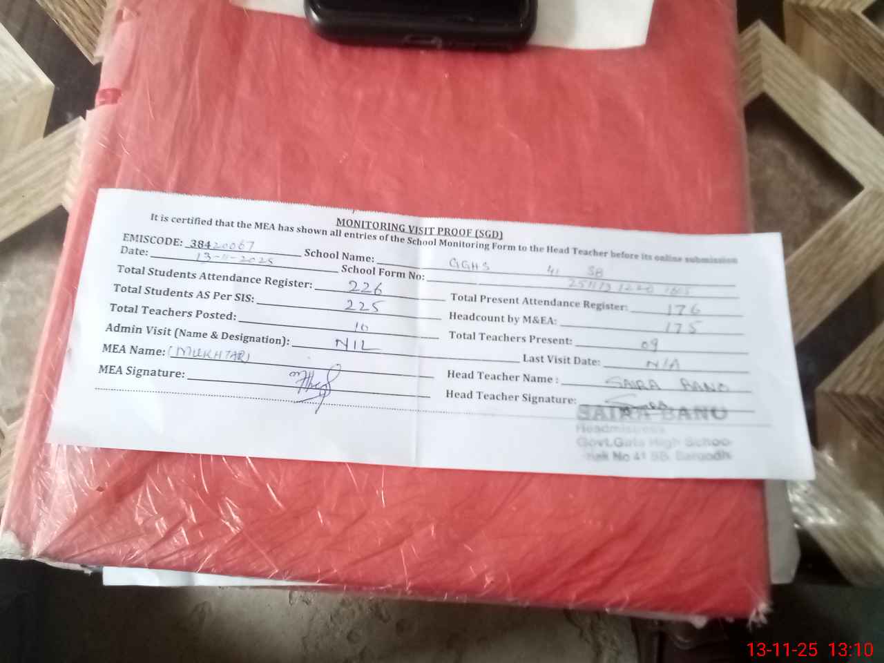 | Name: SA**** BA**** Designation: (School Headmaster's/Headmistress's) I/C SST (Science) Phone/Cell Number: 03**** |