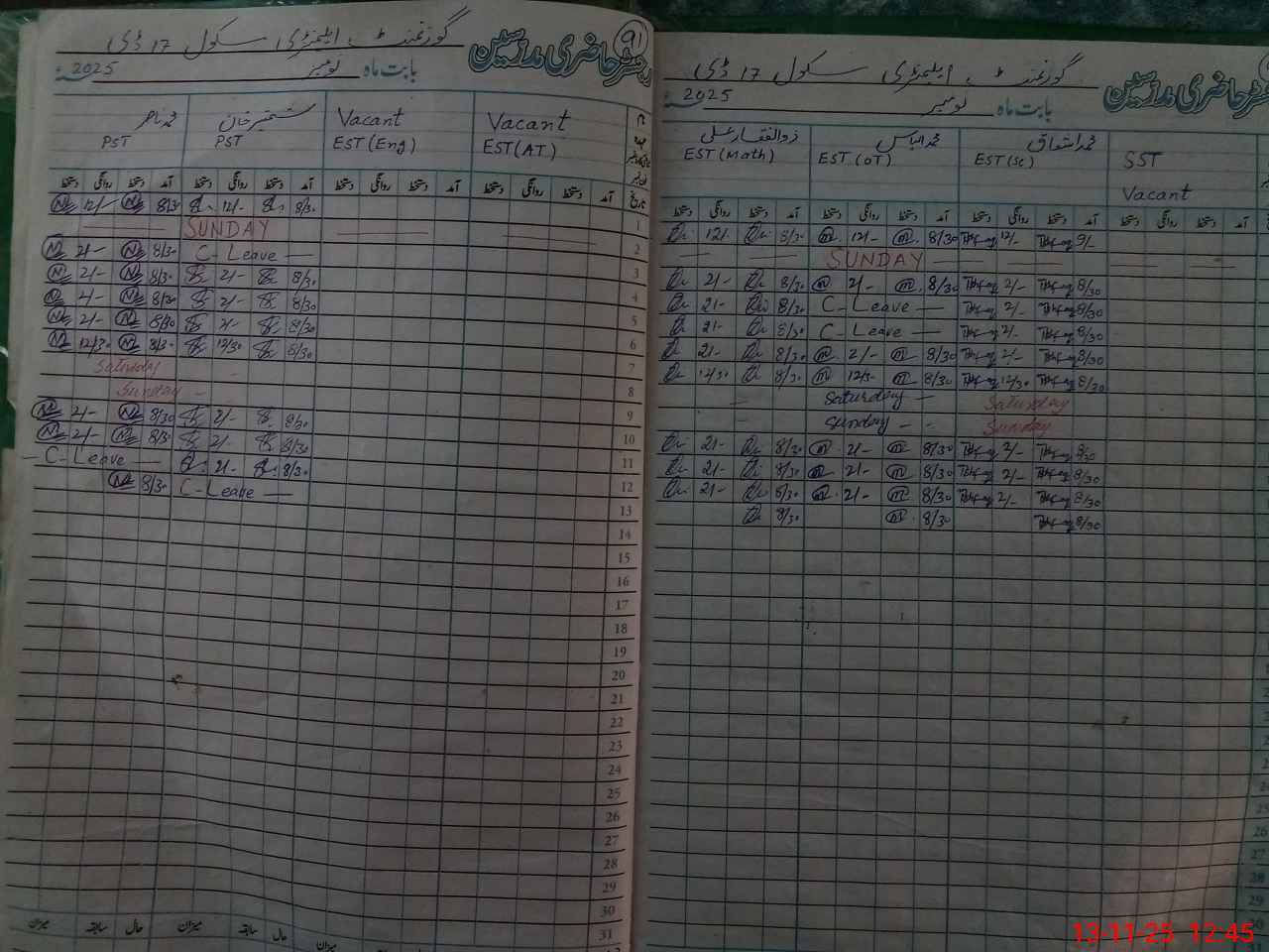 | CNIC | Full Name | Designation | R/C | Absence During Last Calender Month |