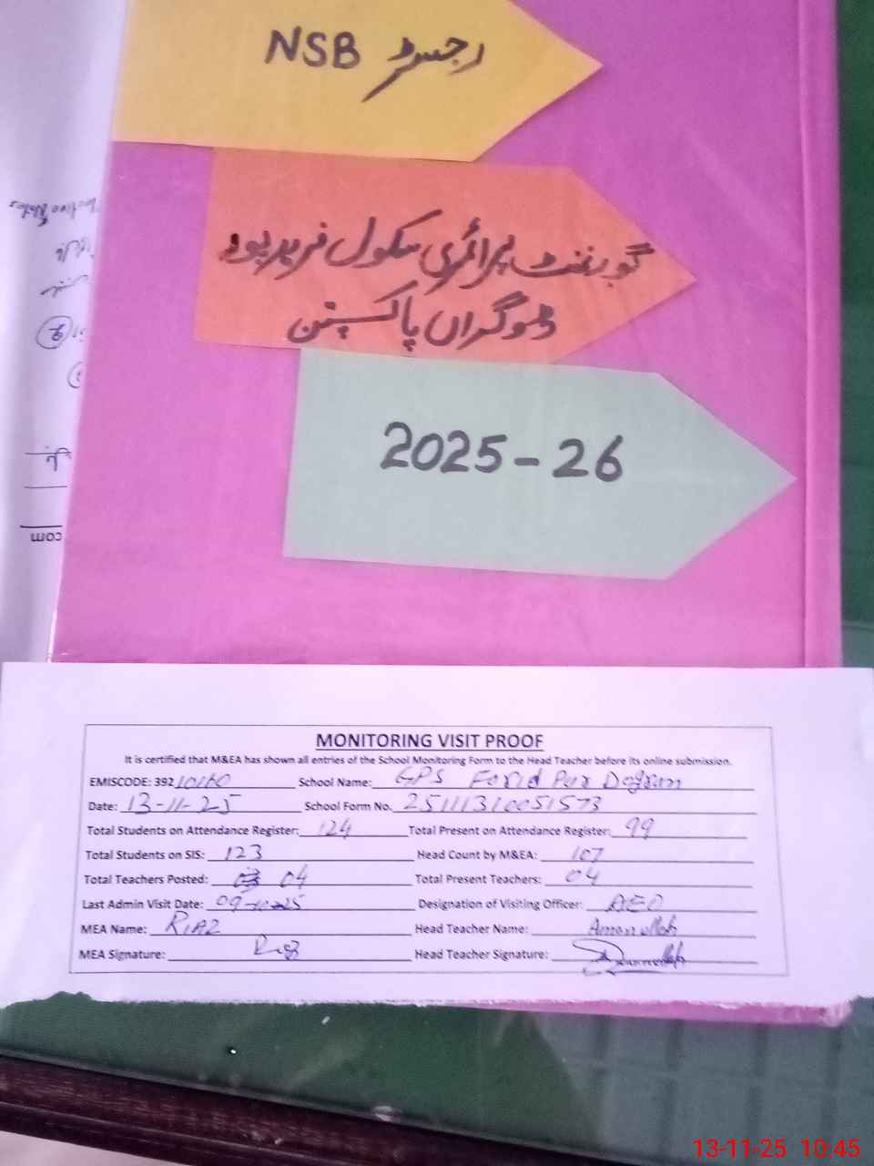 | EMIS Code: 39210160 | Name of School: GPS FARID PUR DOGRAN | |||