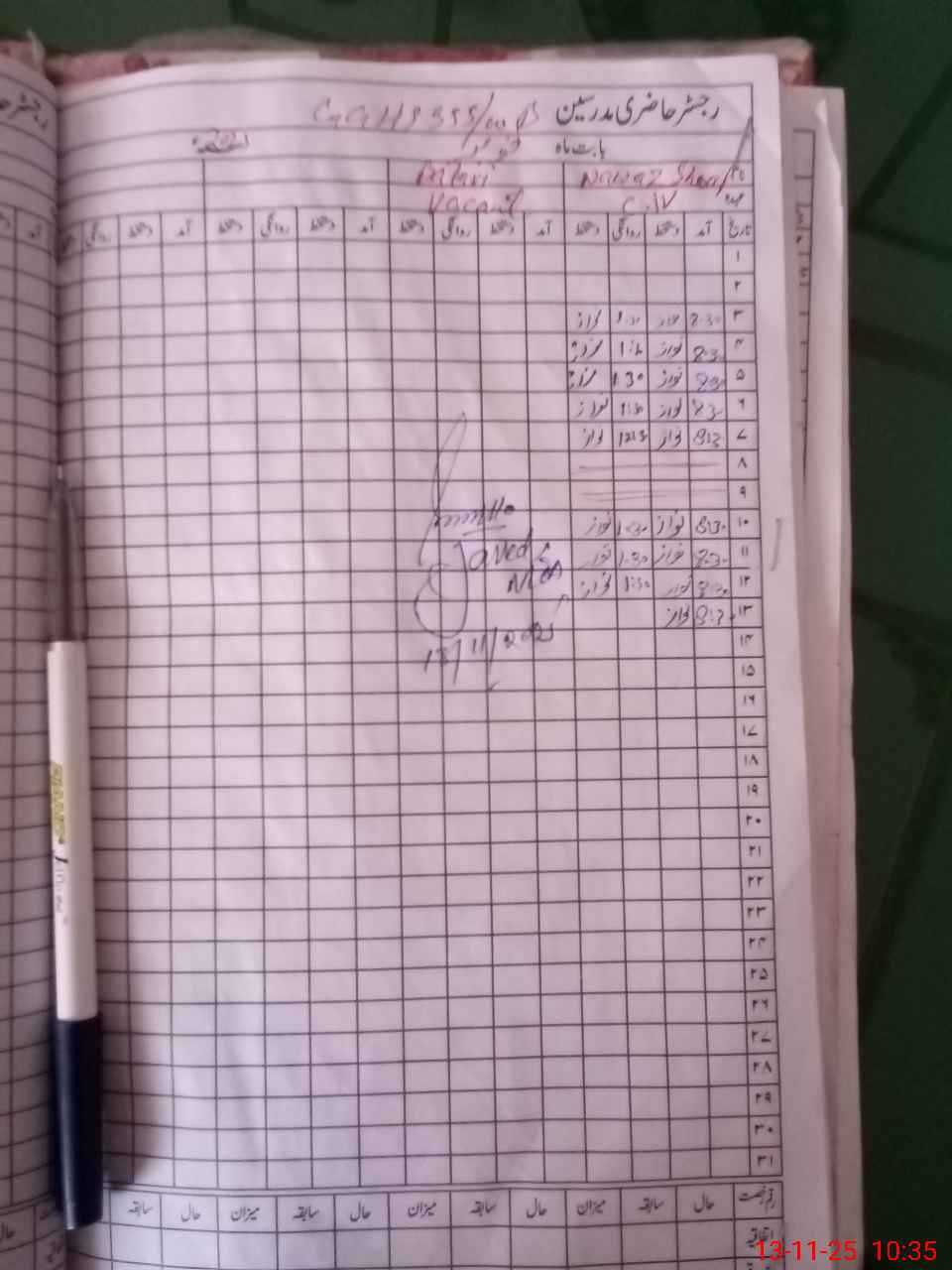| CNIC | Full Name | Designation | R/C | Absence During Last Calender Month |