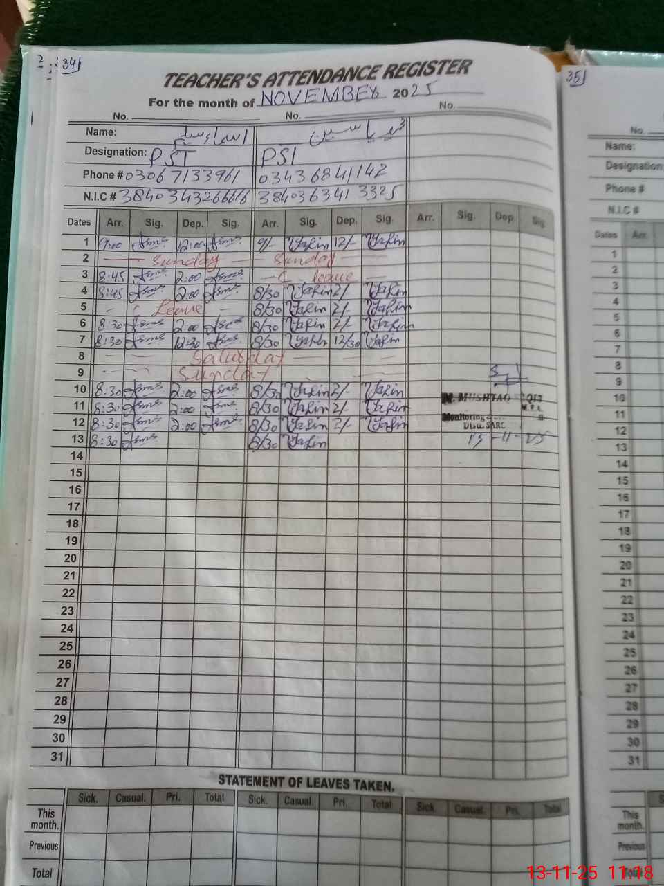 | Name: Is**** Sa**** Designation: (School Headmaster's/Headmistress's) PST Phone/Cell Number: 03**** |