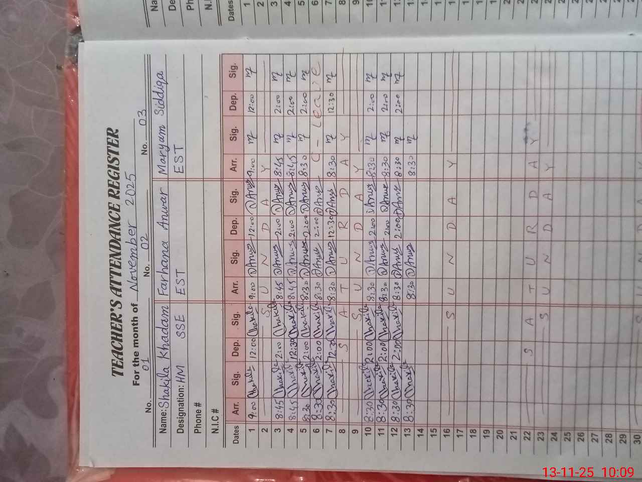 | Name: SH**** KH**** Designation: (School Headmaster's/Headmistress's) Headmistress Phone/Cell Number: 03**** |